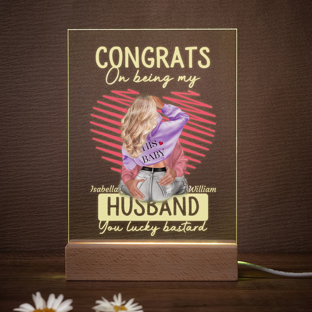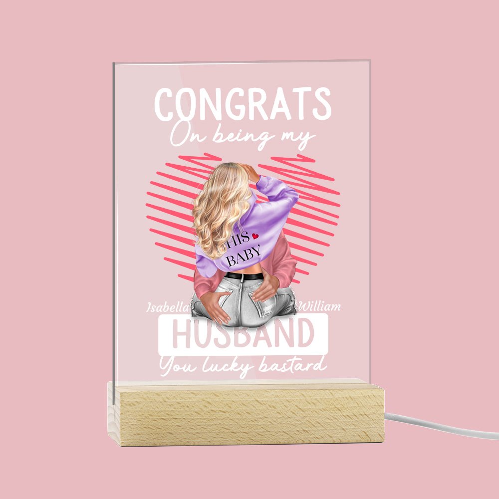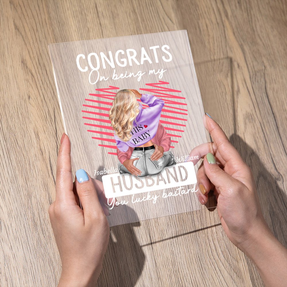 This is a couple-themed acrylic ornament; you can customize it according to the image of yourself and your partner to express your love to them. The message “Congrats On Being My Husband You Lucky Bastard” is printed on the acrylic ornament to cherish the love story between you and your lover.