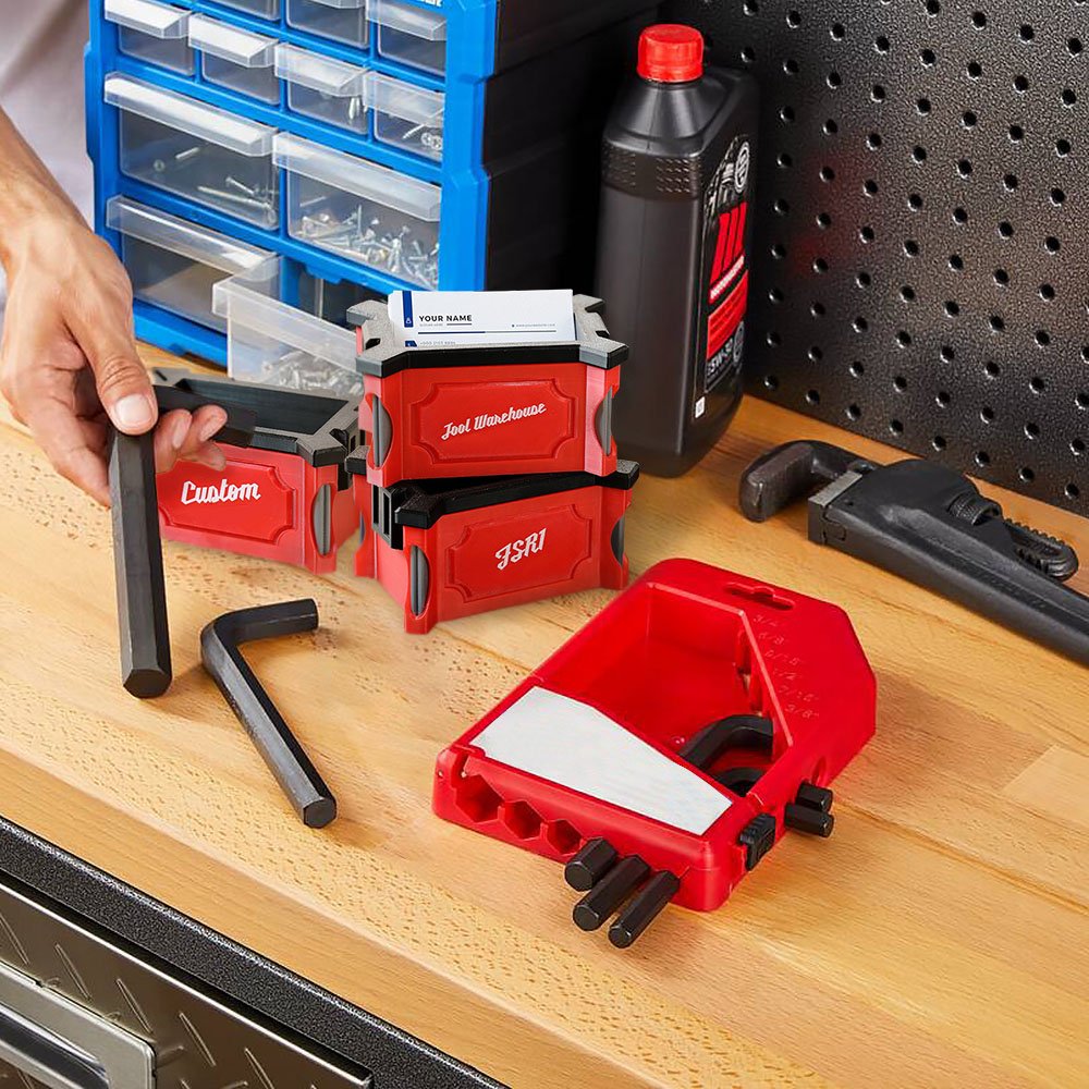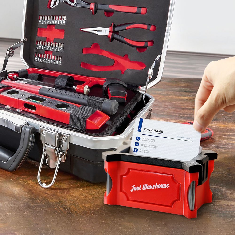 Modeled after the popular tool storage system, this compact organizer is perfect for holding your business cards or small items, adding a touch of industrial style to your daily setup.