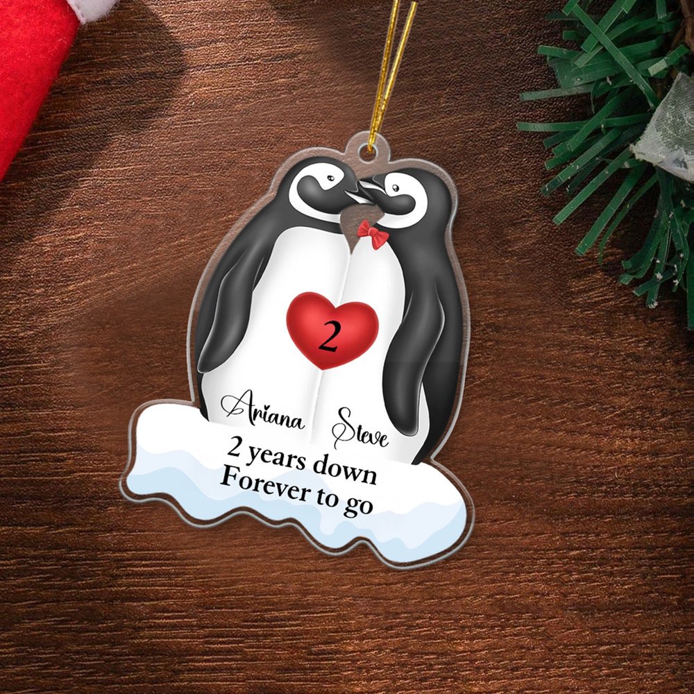 These charming acrylic penguins capture the essence of enduring love with their sweet embrace. The crystal-clear material enhances their playful details. Customize with your names and special date to transform this ornament into a timeless keepsake of your unique love story.