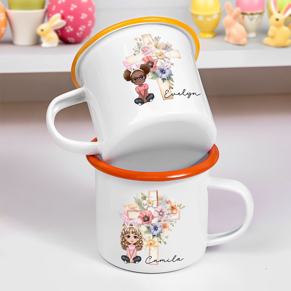 This enamel cup combines cute rabbit ears with exquisite floral cross patterns and is paired with a warm and childlike cartoon design, which is deeply loved by children. Not only that, we also provide name and cartoon image customization services, so that every child has a unique cup, enhancing their sense of belonging and pride.