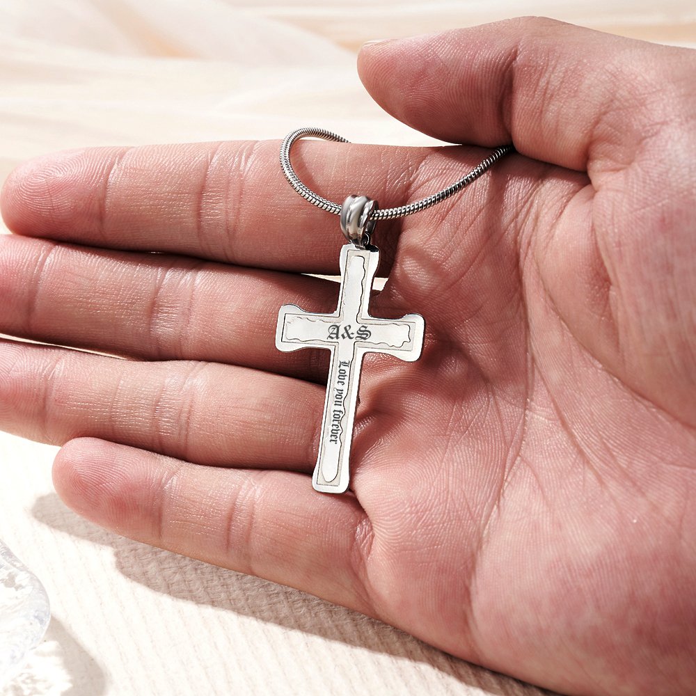 Personalized Cross Necklace with Engraved Text Religious Jewelry Baptism Christmas Gift for Men