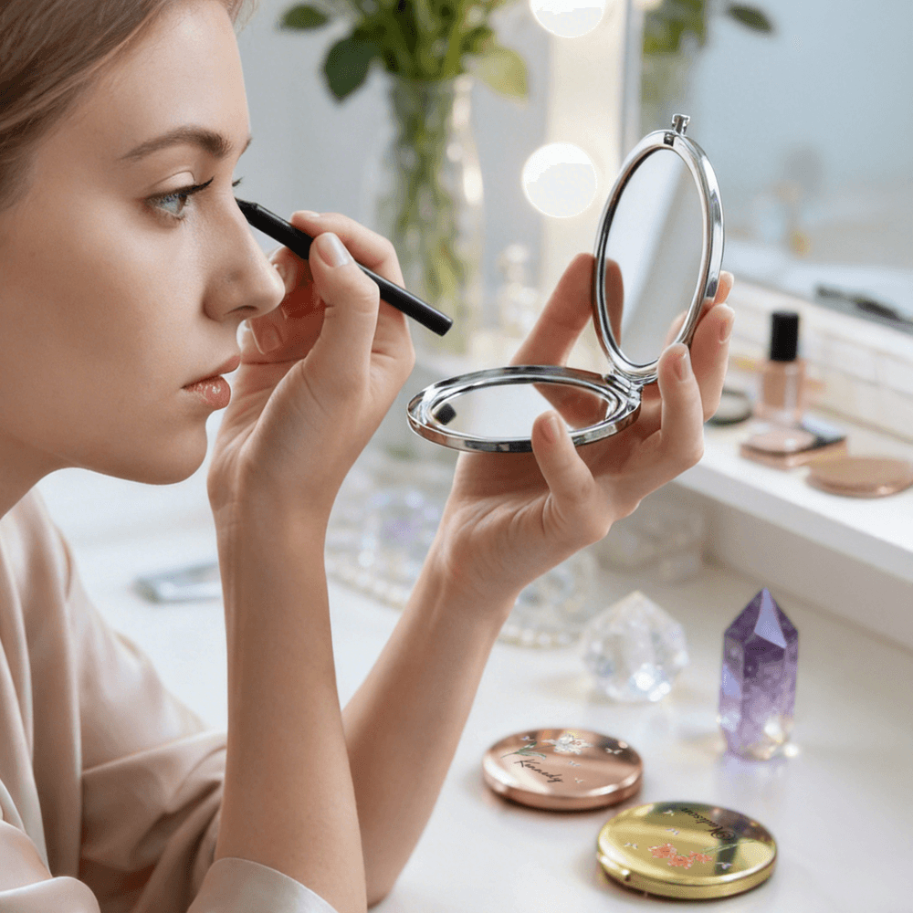 Whether at home, in the office, or at a café, this portable makeup mirror fits seamlessly into any environment. Its compact, lightweight design allows for easy storage in your handbag, enabling you to touch up and organize your look wherever you are. Whether for daily outings, work, parties, or special occasions, this mirror helps you maintain elegance and confidence.