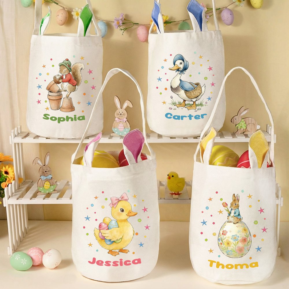 Personalized Cute Bunny Animal Easter Egg Stars Bunny Ears Basket with Name Egg Hunting Party Easter Gift for Boys Girls