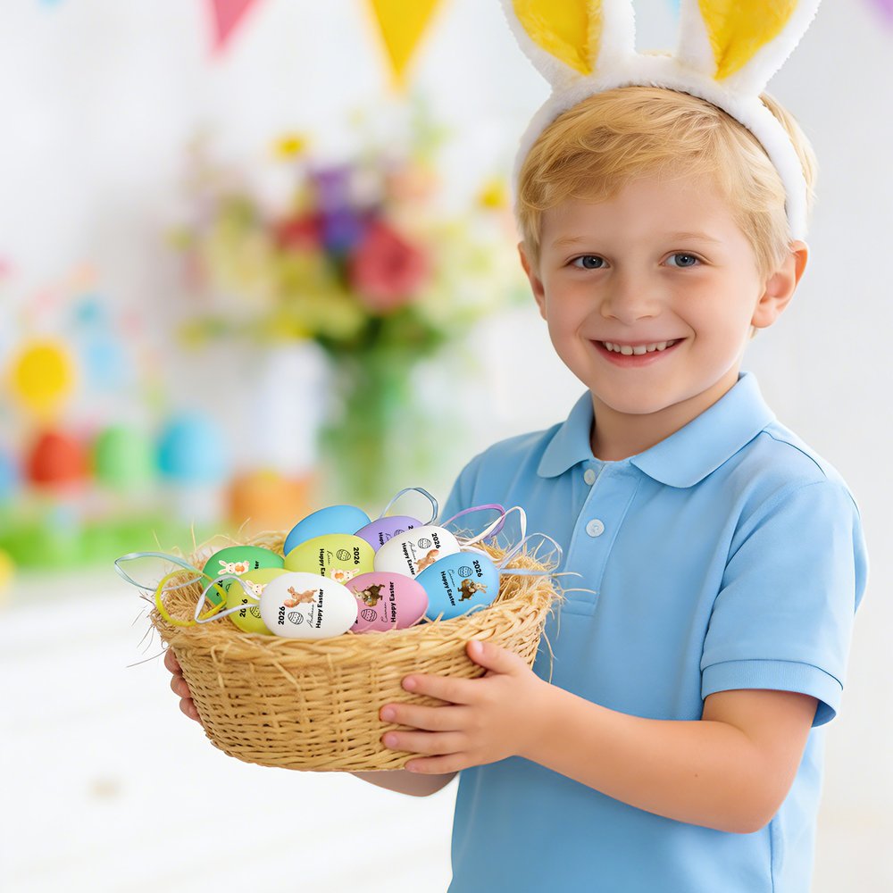 With fading-resistant, long-lasting colors and waterproof material, it is suitable for both indoor and outdoor use. Each egg comes with a colorful ribbon lanyard, requiring no additional accessories—ideal for decoration, DIY projects, Easter egg hunt activities, or photo props.