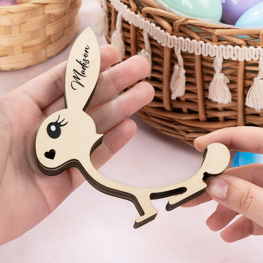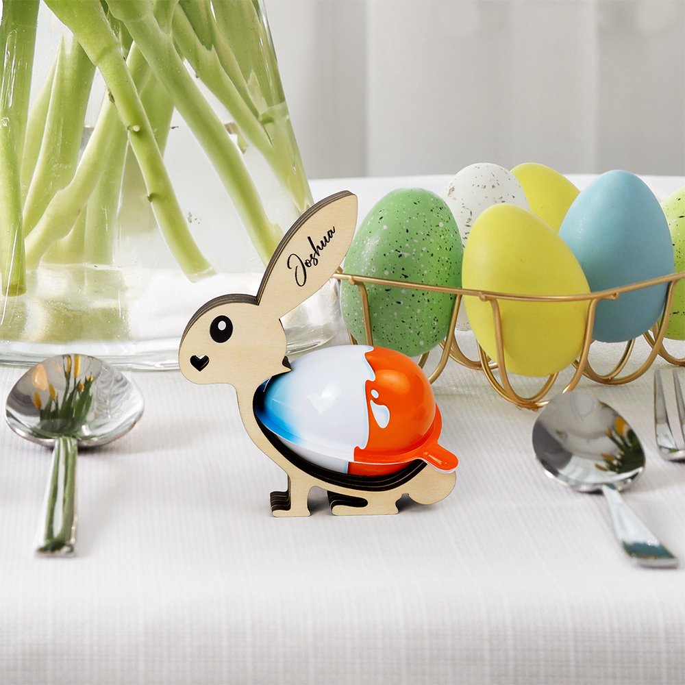 Personalized Cute Bunny Design Wooden Easter Egg Holder with Name Easter Party Home Decor Birthday Gift for Kids Family