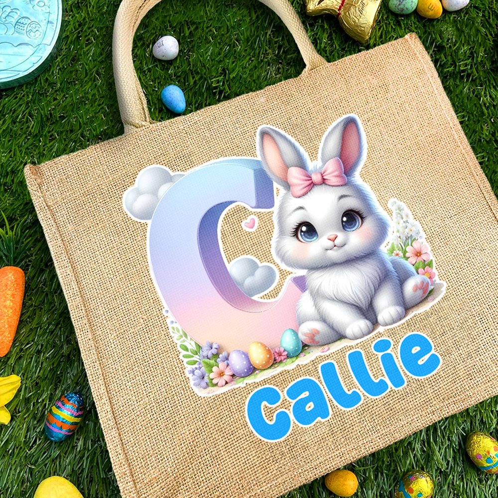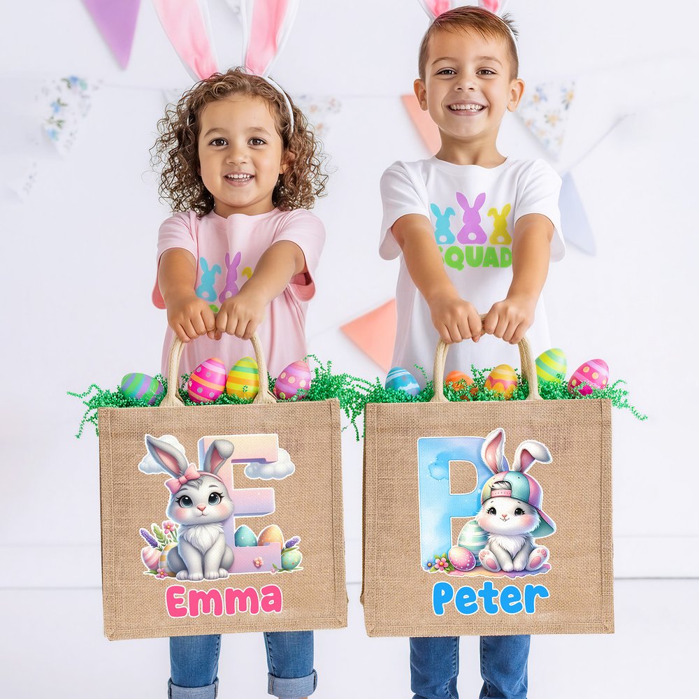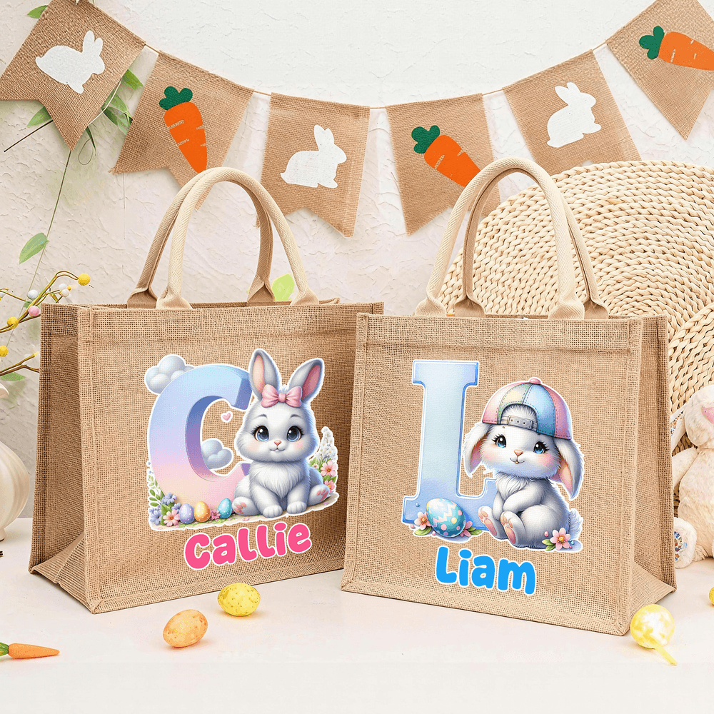 The bag features a cute Easter-themed cartoon bunny design, complete with customizable initials and names, creating a truly personalized feel. The charming style perfectly suits children's preferences and instantly brightens the joyful Easter atmosphere.