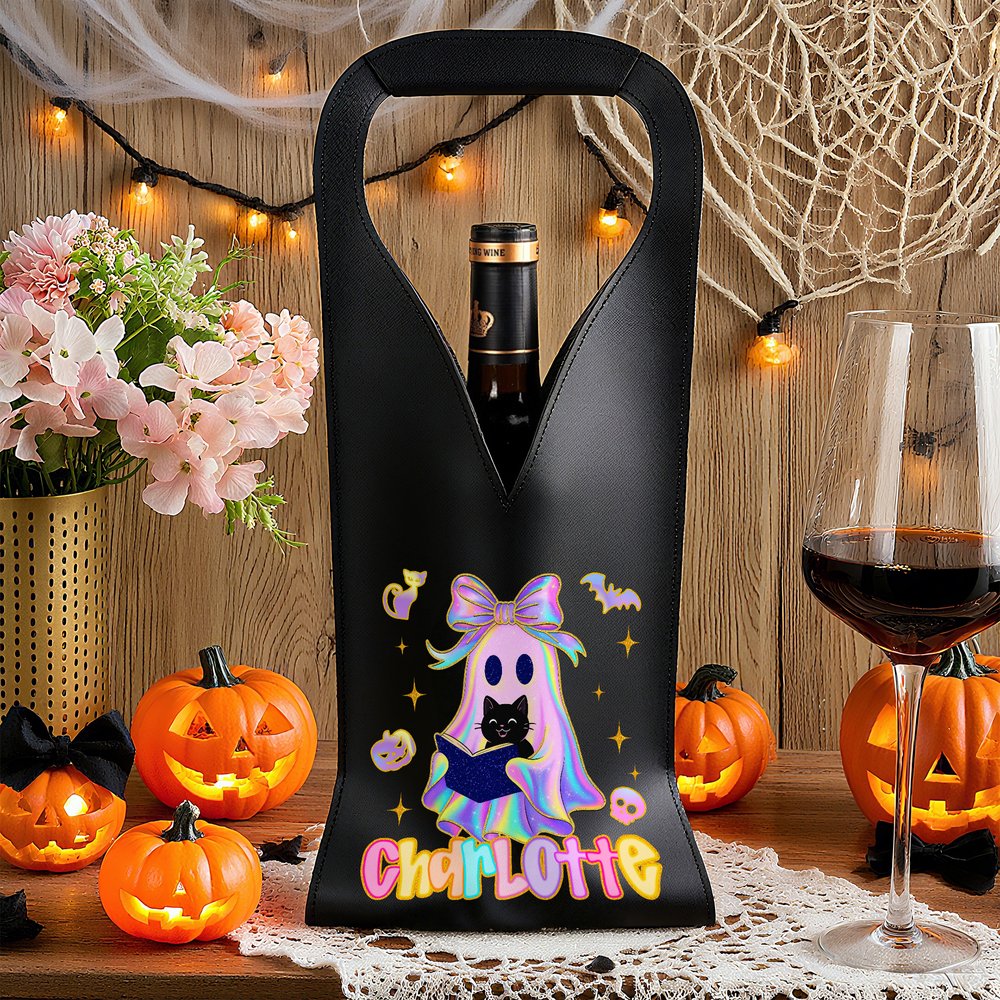 With its unique design and dazzling colors, this wine bag becomes a highlight for both holiday celebrations and daily use. The wine bag is painted with cute ghost images, combined with Halloween elements such as pumpkins and black cats, and personalized names, making each wine bag full of personality and fun.