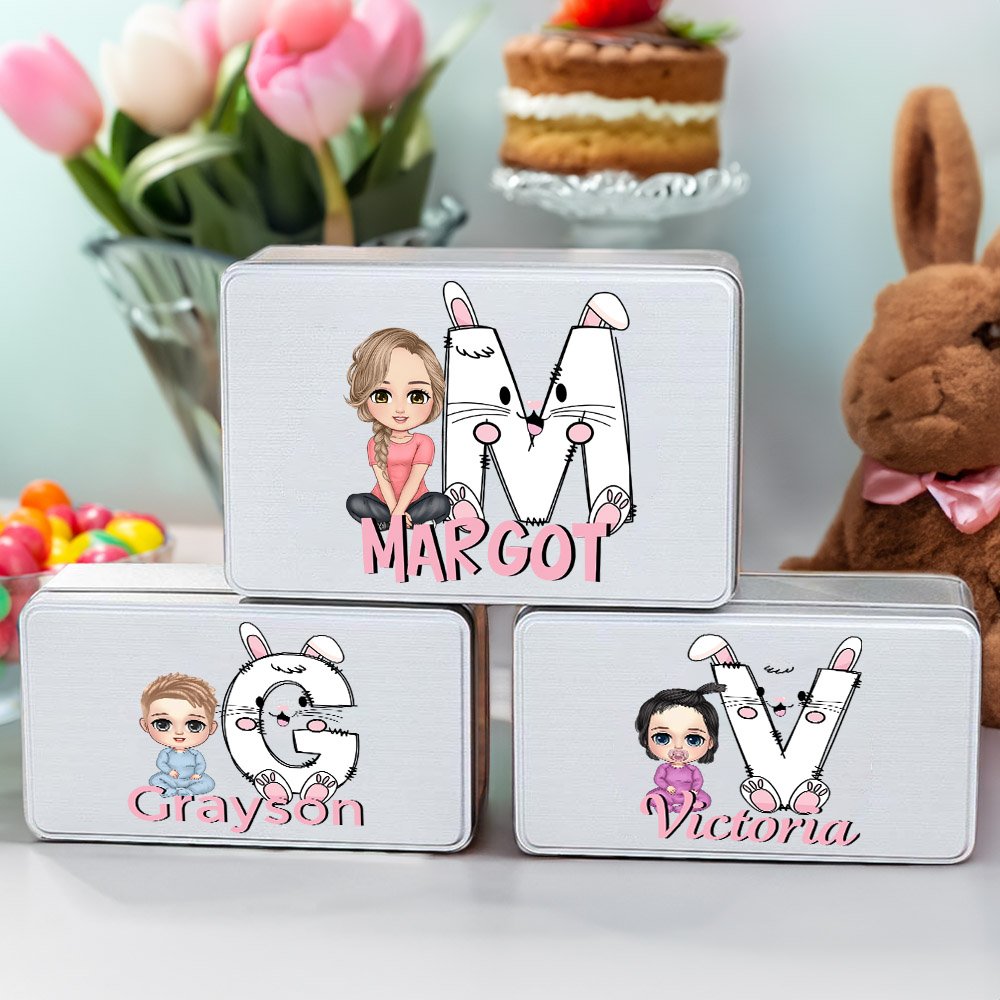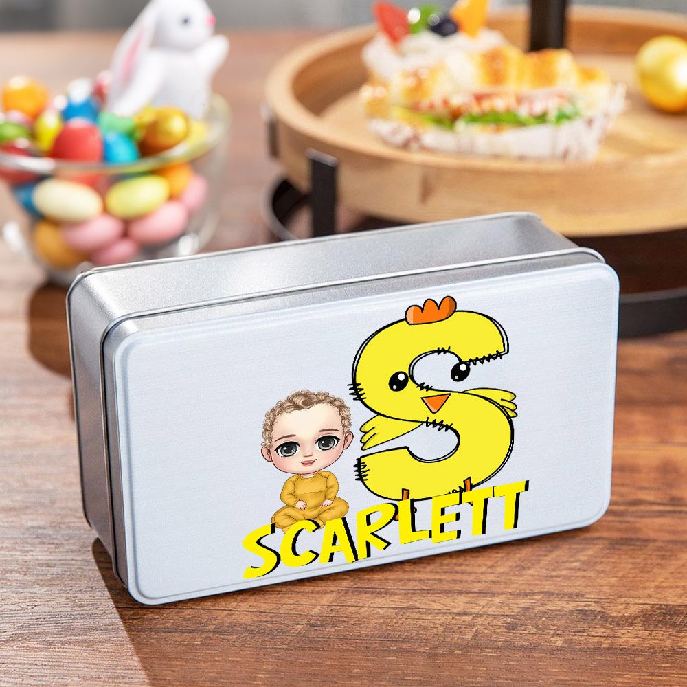 The design of this box is full of children's fun and personalized elements, and each box is printed with cute cartoon characters and letter patterns. The cartoon characters are vivid and colorful, which can attract children's attention and stimulate their imagination. The design of the letter pattern also combines the elements of rabbits and chicks, adding a strong festive atmosphere to the whole box. You can also customize your child's name on the box to make it more specific.