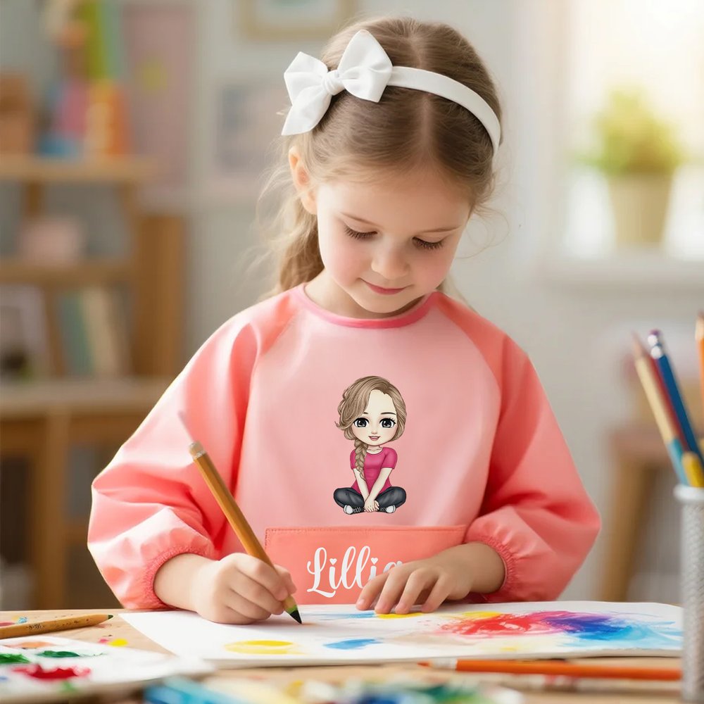 Personalized Cute Cartoon Character Waterproof Long Sleeve Kid Apron with Name Cooking Painting Handcraft Activities Birthday Gift for Kids