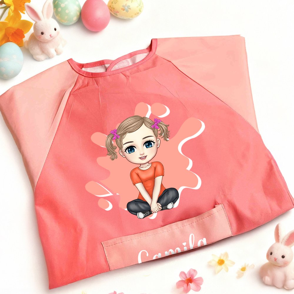 The front features a customizable cartoon character design, and the pocket can be customized with a name, showcasing each child's individuality. Available in a variety of vibrant colors, it perfectly matches children's aesthetics, adding energy to creative moments. This apron will become your child's "personal creative gear" for painting and crafting, inspiring joy and individuality in every creation.