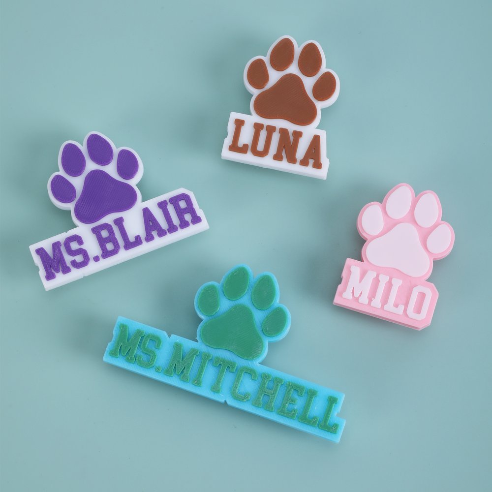 Featuring dog paws, customize an exclusive name, and choose from 23 colors (like sky blue, light blue, hot pink). Whether showing love for pets or adding unique flair to your bag, match your personal taste.
