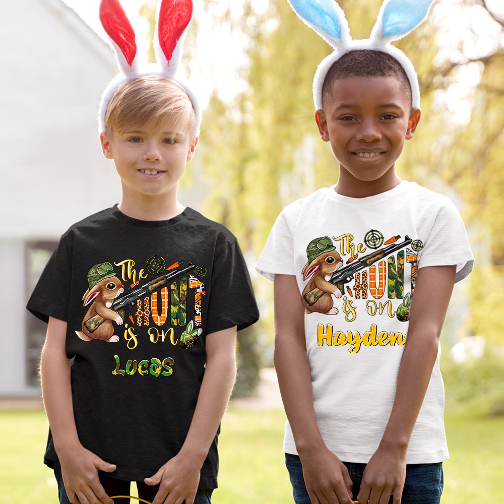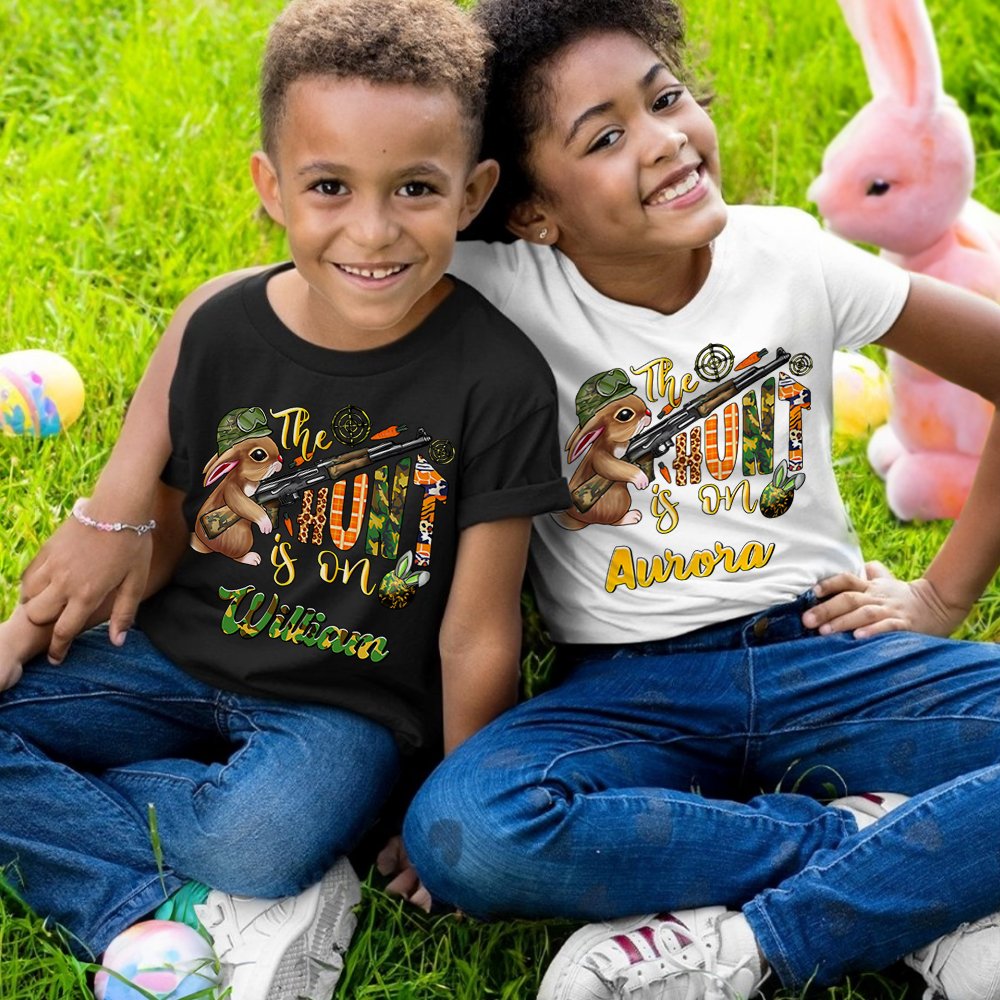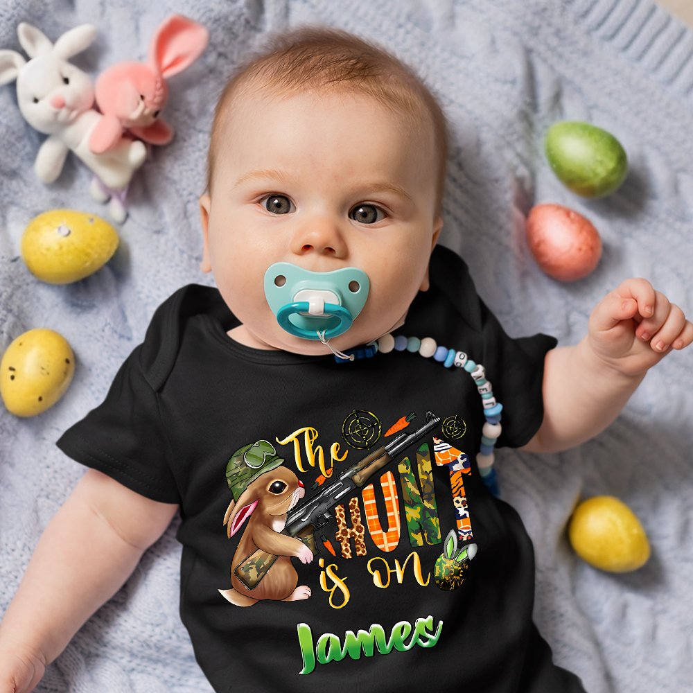 personalized item, such as a t-shirt, long-sleeve onesie, or short-sleeve onesie, featuring an adorable bunny design. You can also have your child's name printed on it, creating a unique and personalized Easter gift they will love.
