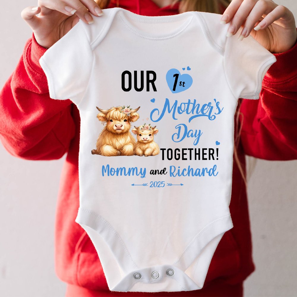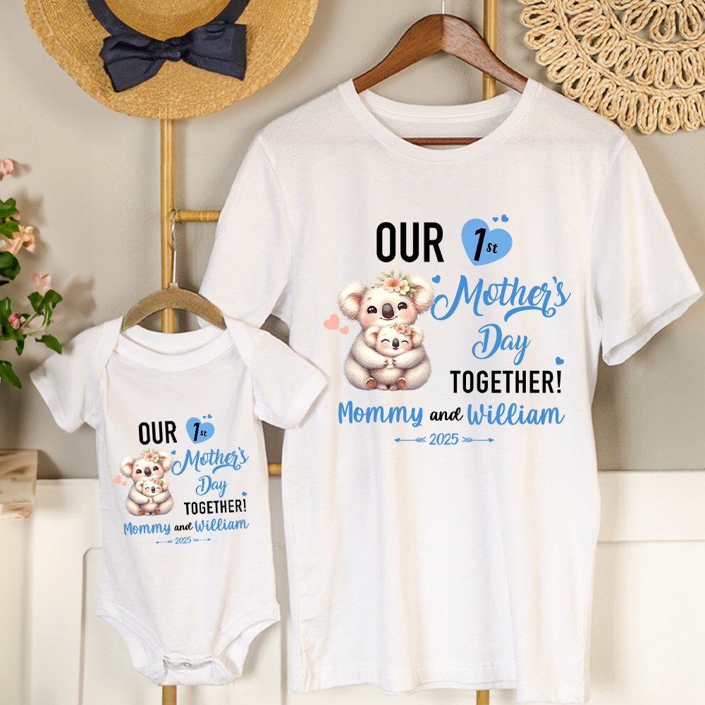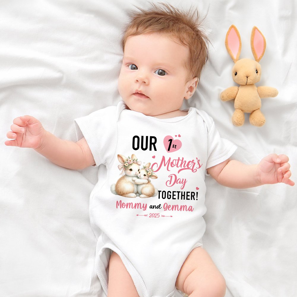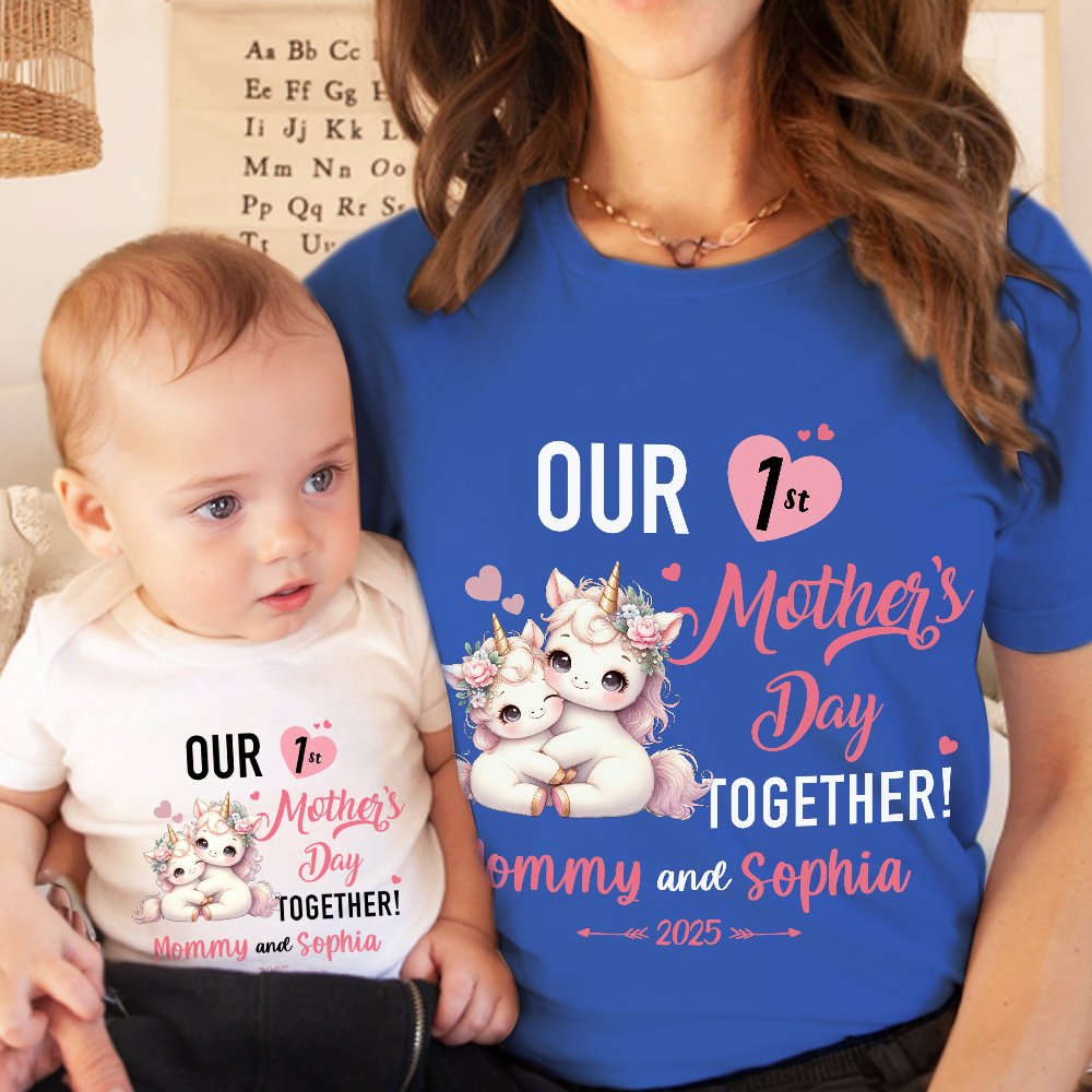 The front of this T-shirt and bodysuit is printed with the warm words "OUR 1st Mother's Day TOGETHER!", and is matched with lively and cute animal patterns, symbolizing the greatness of maternal love and the depth of family affection. We provide 20 kinds of animal patterns to enrich your choices. In addition, the clothes also support customized names and years to make them more exclusive.