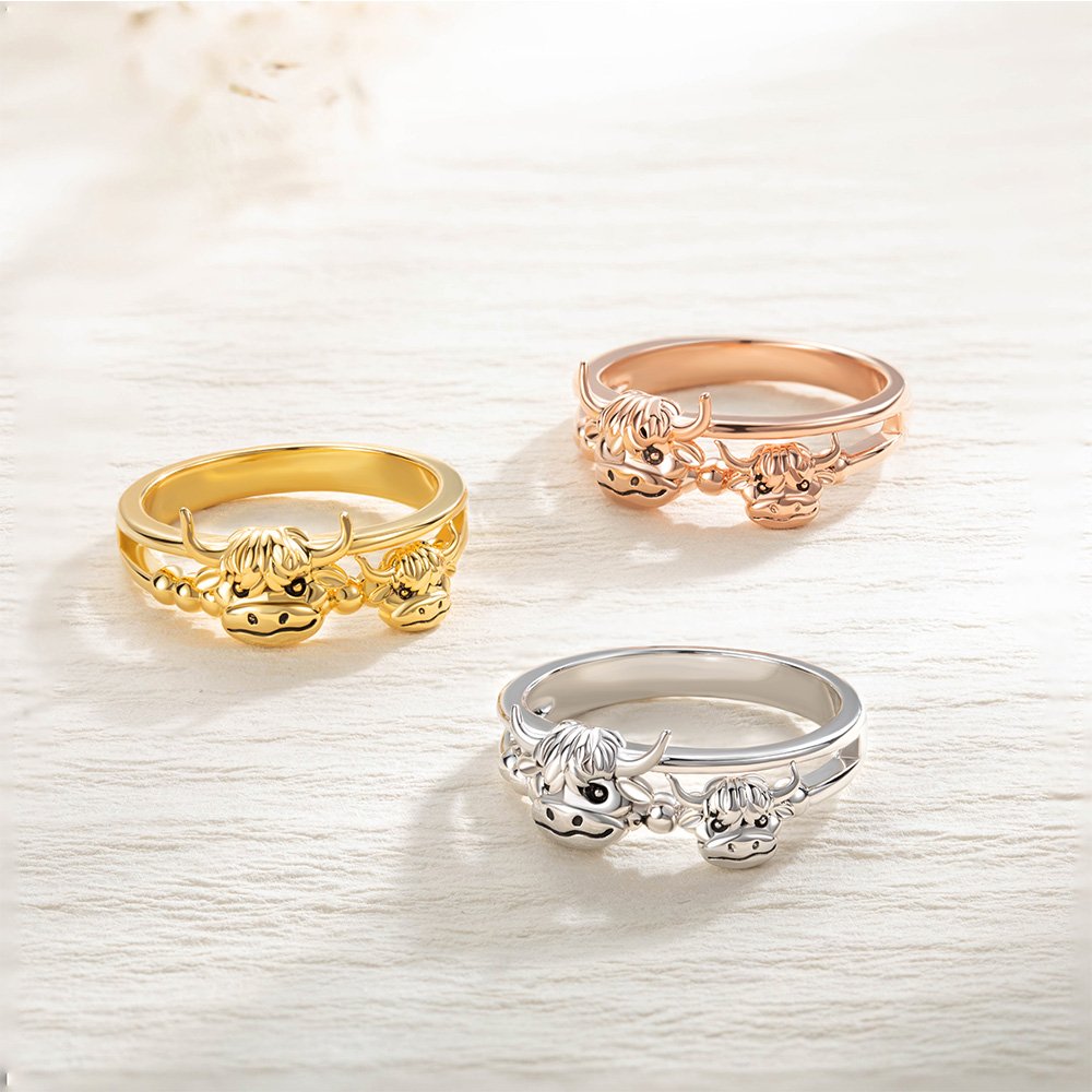 Cute plateau cow rings are the perfect way to express your love and affection. Whether you are gifting this to a Highland cattle lover or someone who simply loves animals, this ring is sure to bring a smile to their face.