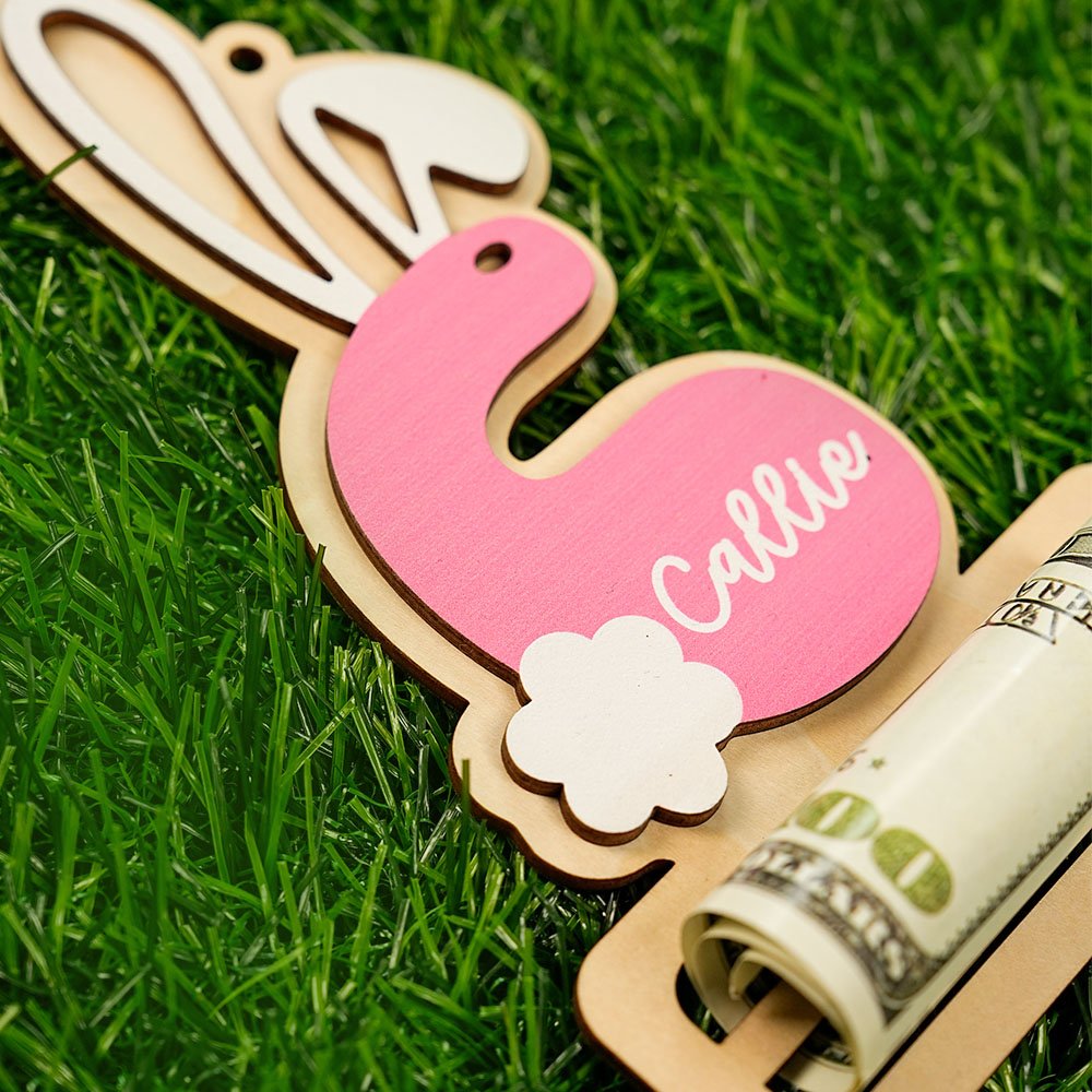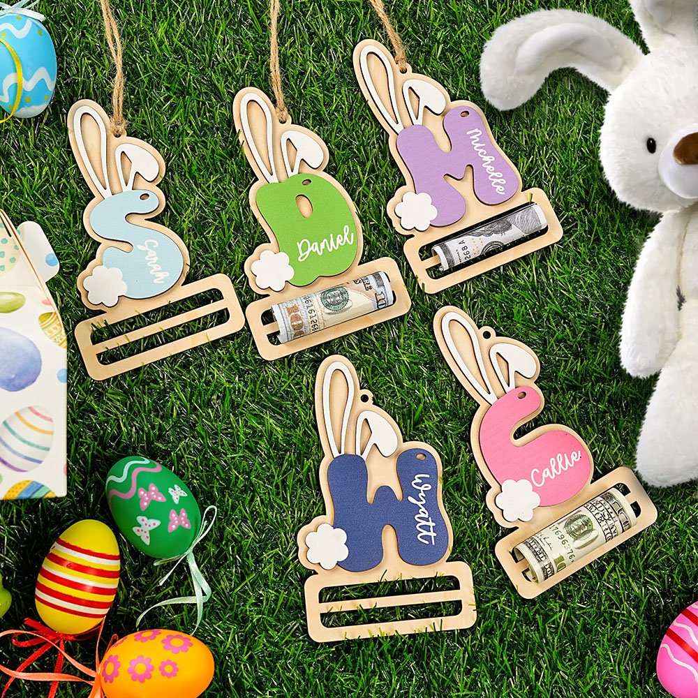 This money holder features an adorable Easter bunny design, complemented by a bold initial design decorated with cute bunny ears. It not only shows the vibrant atmosphere of the party but also adds a touch of whimsy to your gifts. The name and initial can be customized on the money holder to make it stand out and bring joy and excitement to children of all ages.
