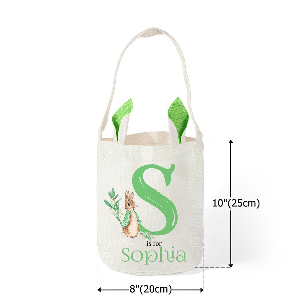 The bucket bag features the beloved character Peter Rabbit and can be customized with your child's name and initials, with cute bunny ears, making it a special keepsake for every little one, bringing joy and excitement to children of all ages.