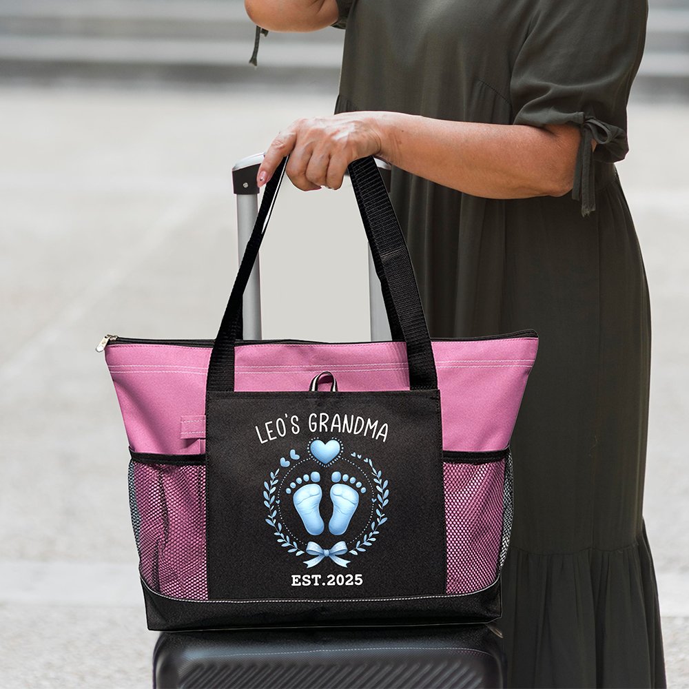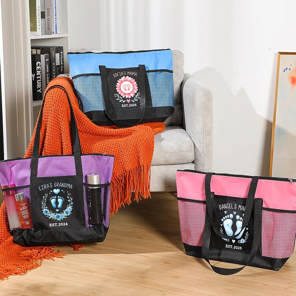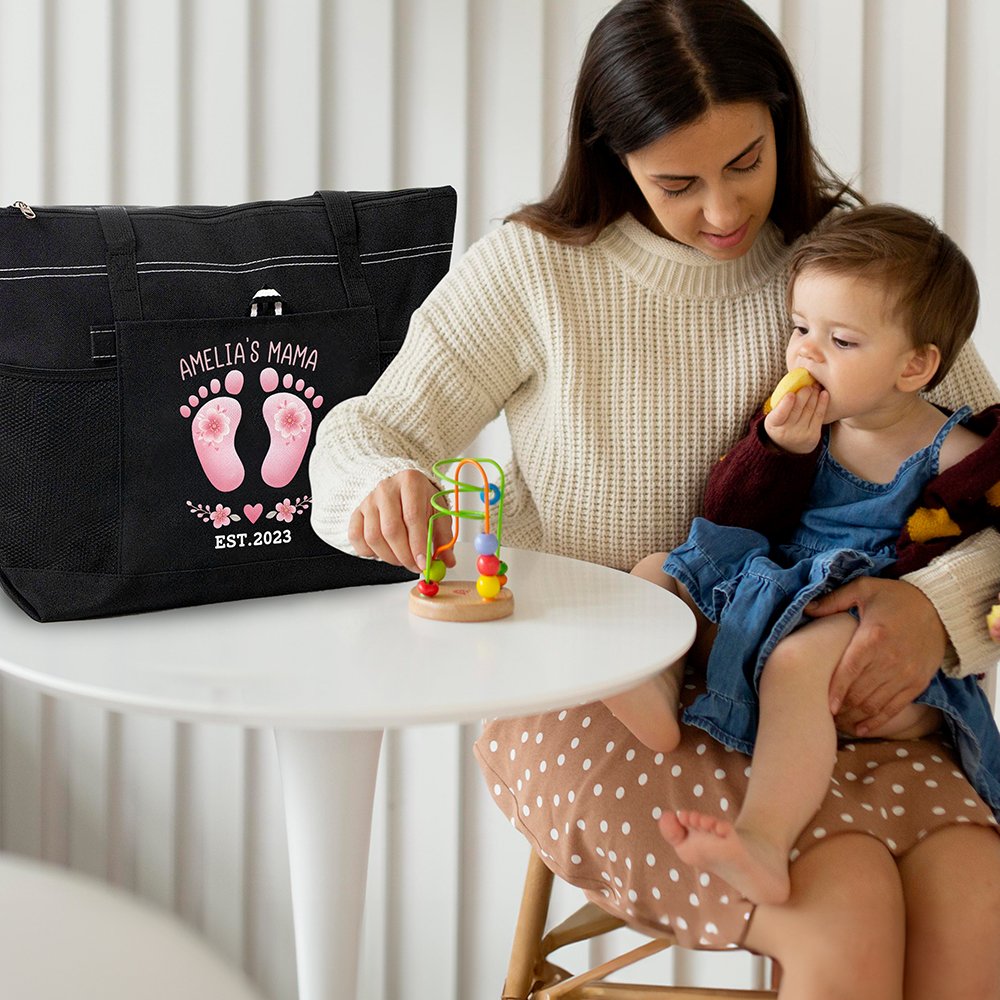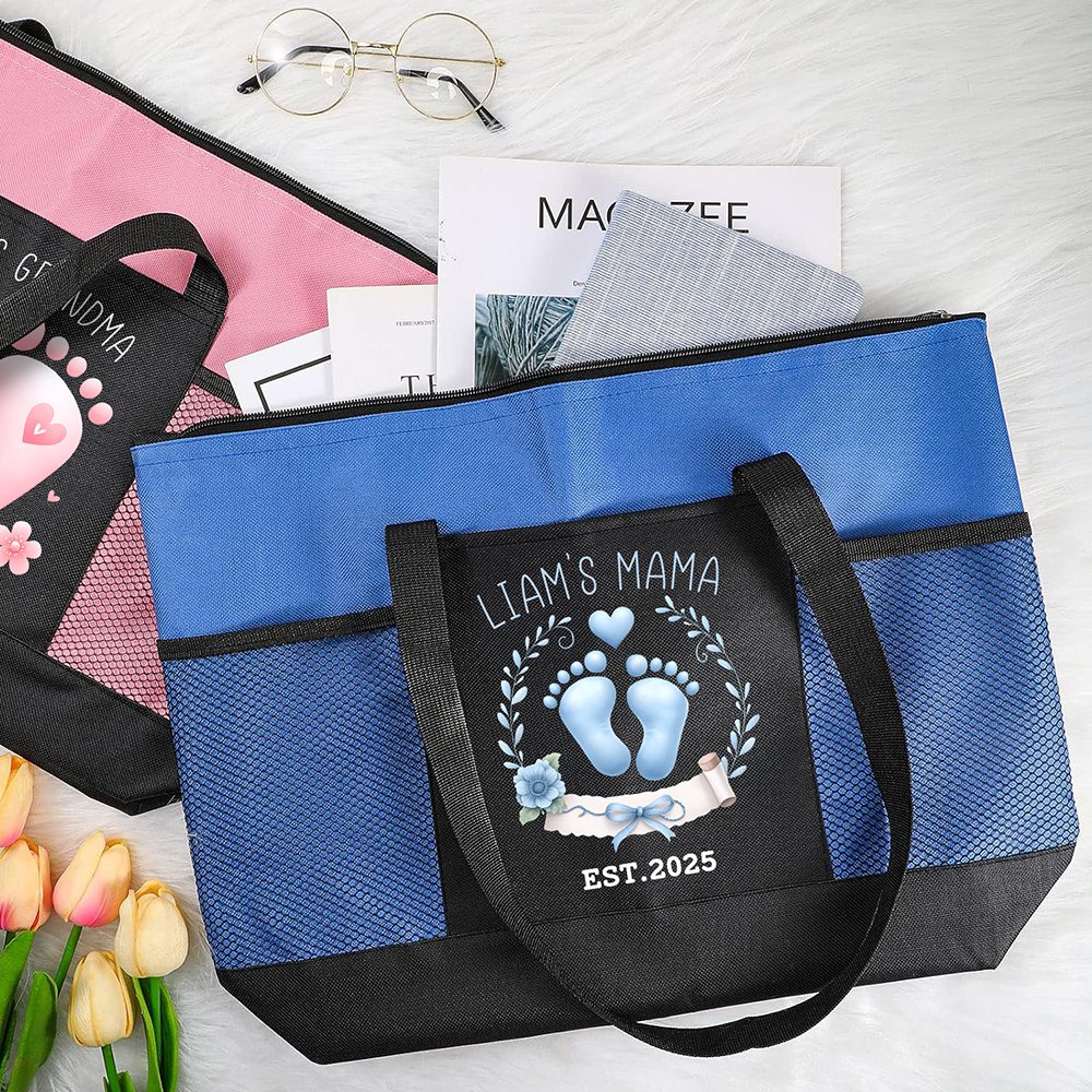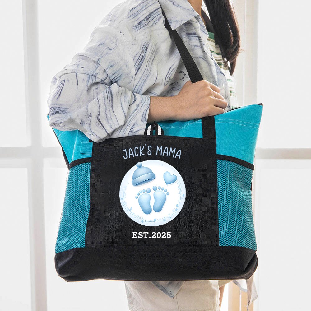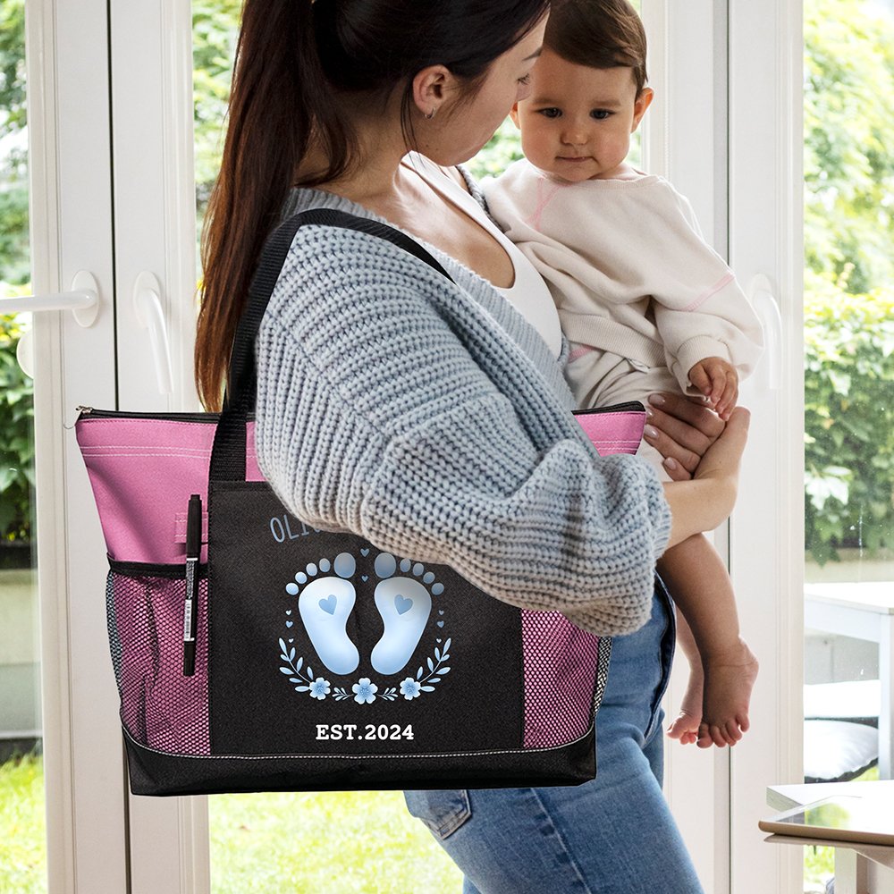 This tote bag features a cute pattern of children's feet, symbolizing the footprints of the baby's growth. It is available in pink and blue, and there are 23 different patterns under each color for you to choose from, satisfying your pursuit of personalization. In addition, the handbag also supports customizing the child's name and year, making each tote bag unique and full of commemorative significance.