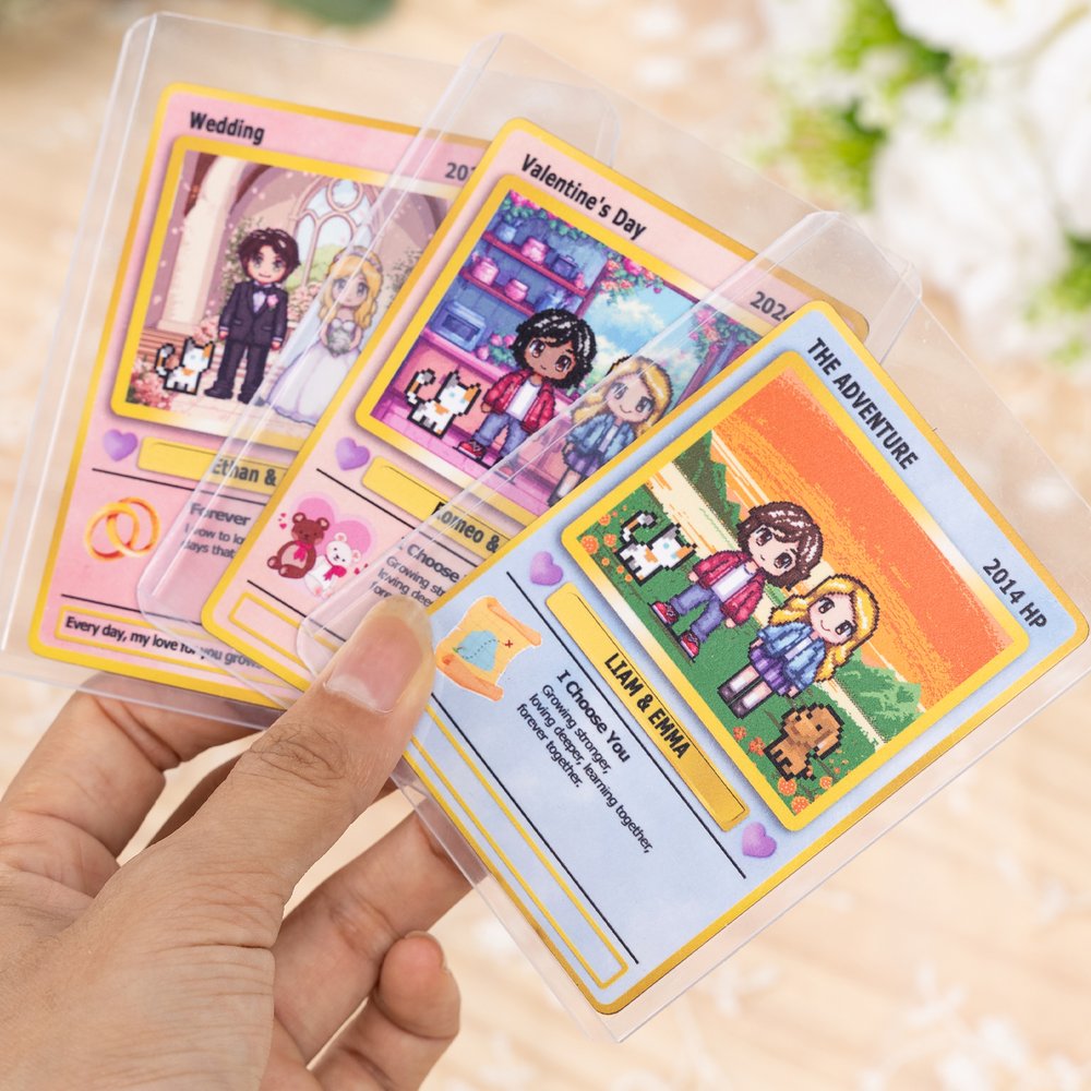 With a design style inspired by trading card games, it allows for customization of text, scene, and date. Couples can print their names, attack descriptions, or other words on the card and pair them with their favorite pixel character images, creating a unique commemorative card.