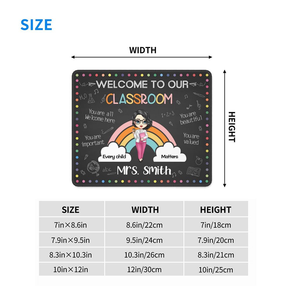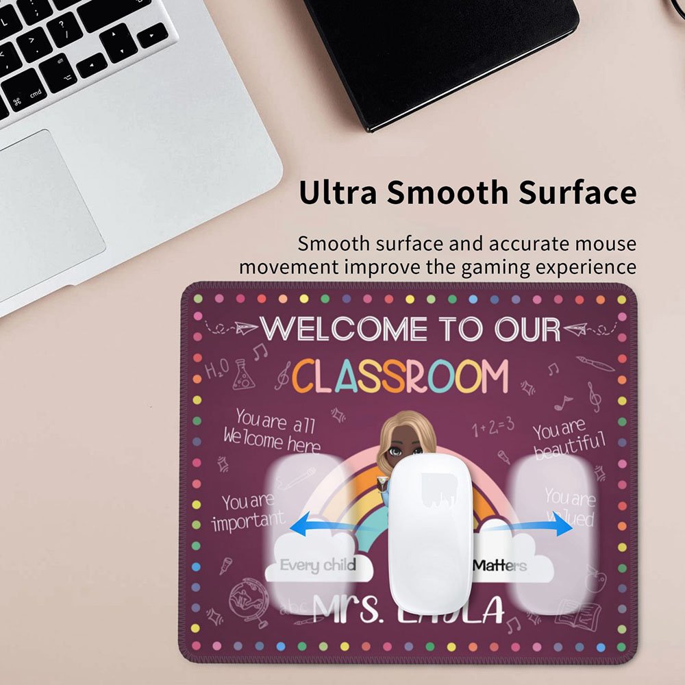 Personalized Welcome To Our Classroom Name Mouse Pad with Cartoon Teacher Character Appreciation Back to School Gift for Teacher