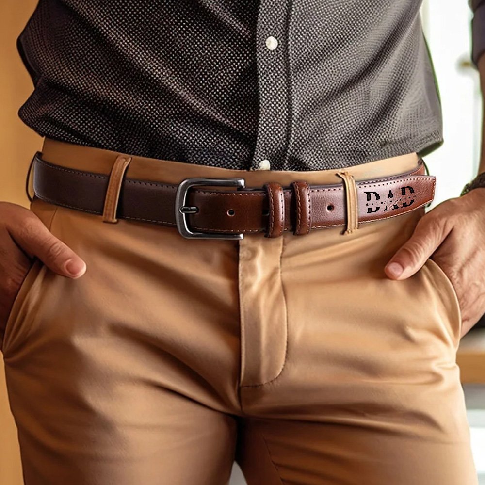 This belt is available in four different colors, with a silver buckle, showing low-key luxury and calm temperament. The front of the belt can be customized with up to 1-6 children's names, and a heart-shaped symbol can be added next to each name to express love for the father. The back of the belt can also be customized with a title to make the belt more special.
