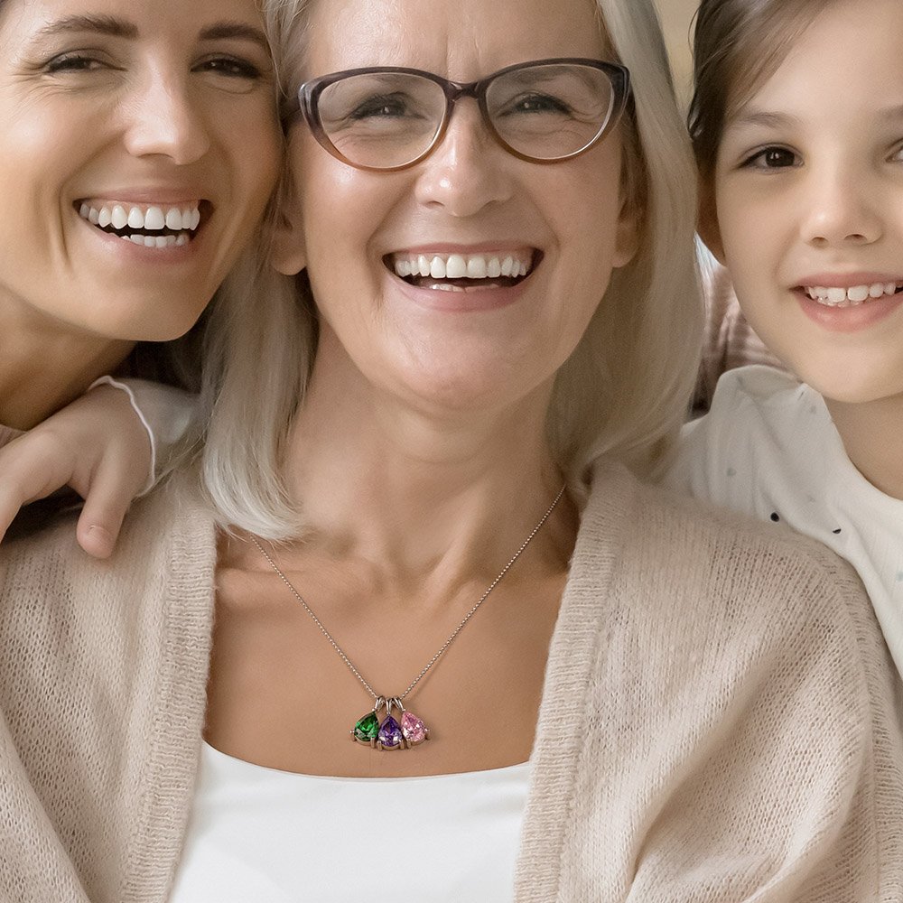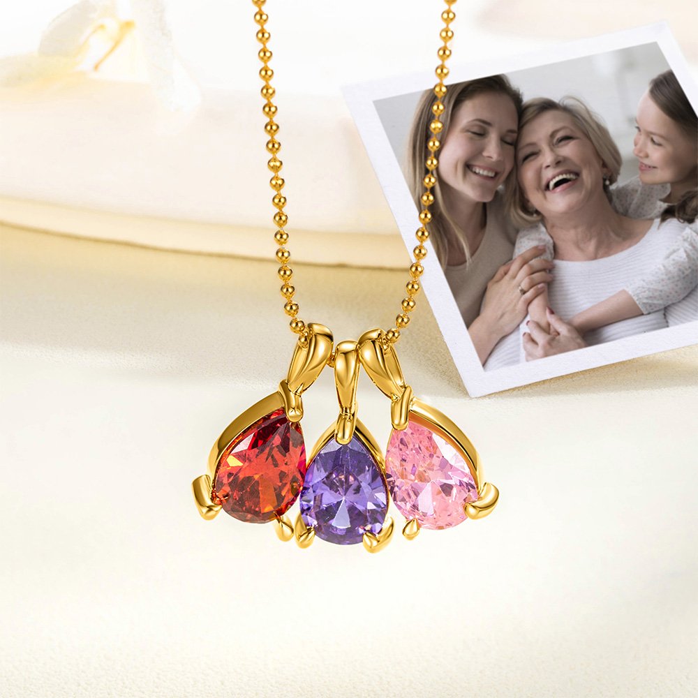 This necklace carries precious family emotions in an elegant teardrop shape. It can be customized with 1 to 6 birthstones, symbolizing the birth months of different family members. Each crystal clear gem represents love and companionship. The simple and exquisite design makes it an ideal choice for daily wear, while also containing deep emotional meaning, keeping love close to the heart at all times.