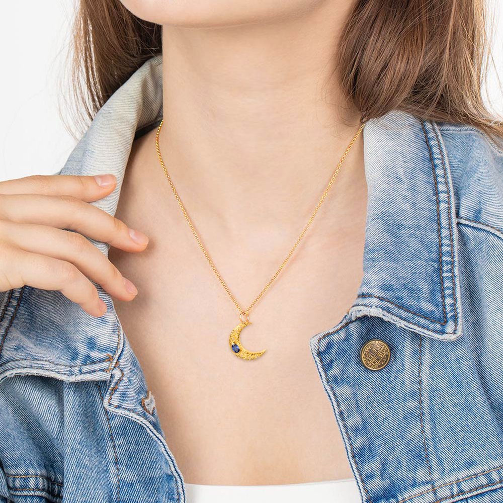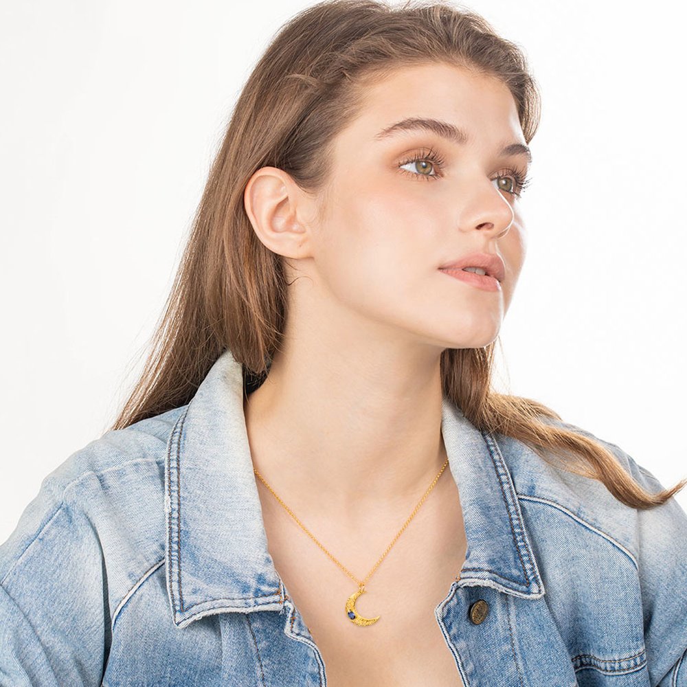 Opal or birthstone makes the moon necklace more refined, the moon pendant represents hope, mystery, and romance. This moon pendant necklace could mean that "I love you to the moon and back" and the gem accompanies the moon to express your love for her.