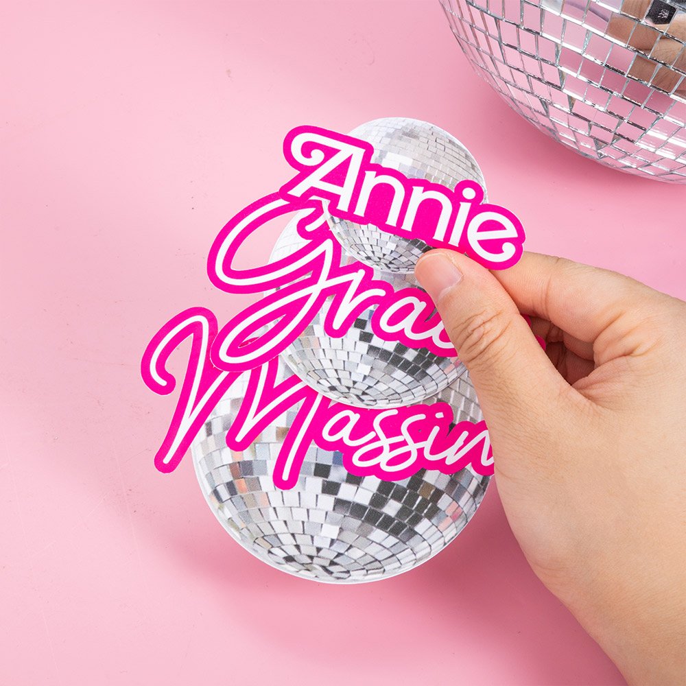 Whether you're a Disco fanatic, or just someone who loves pink, this personalized name sticker is the perfect gift. It allows you to personalize your items and show off your personality in a fun and stylish way. Of course, you can also give it as a gift to your sister or friend to show off their personality.