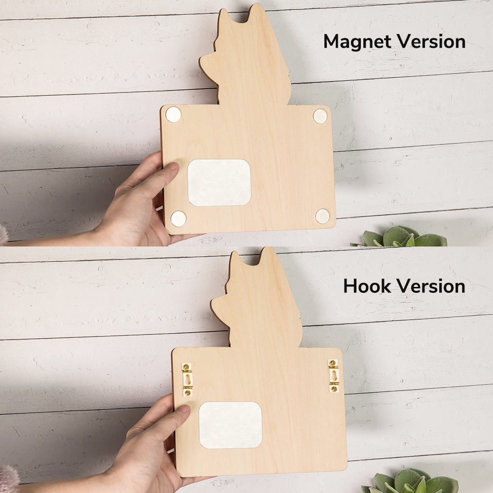 •Feeding your fur baby with family members can lead to forgetting or repeated feedings. You too often forget to feed your pets yourself. This toggle tracker can help you solve this problem nicely. The wooden sign can slide left and right to record the feeding status.