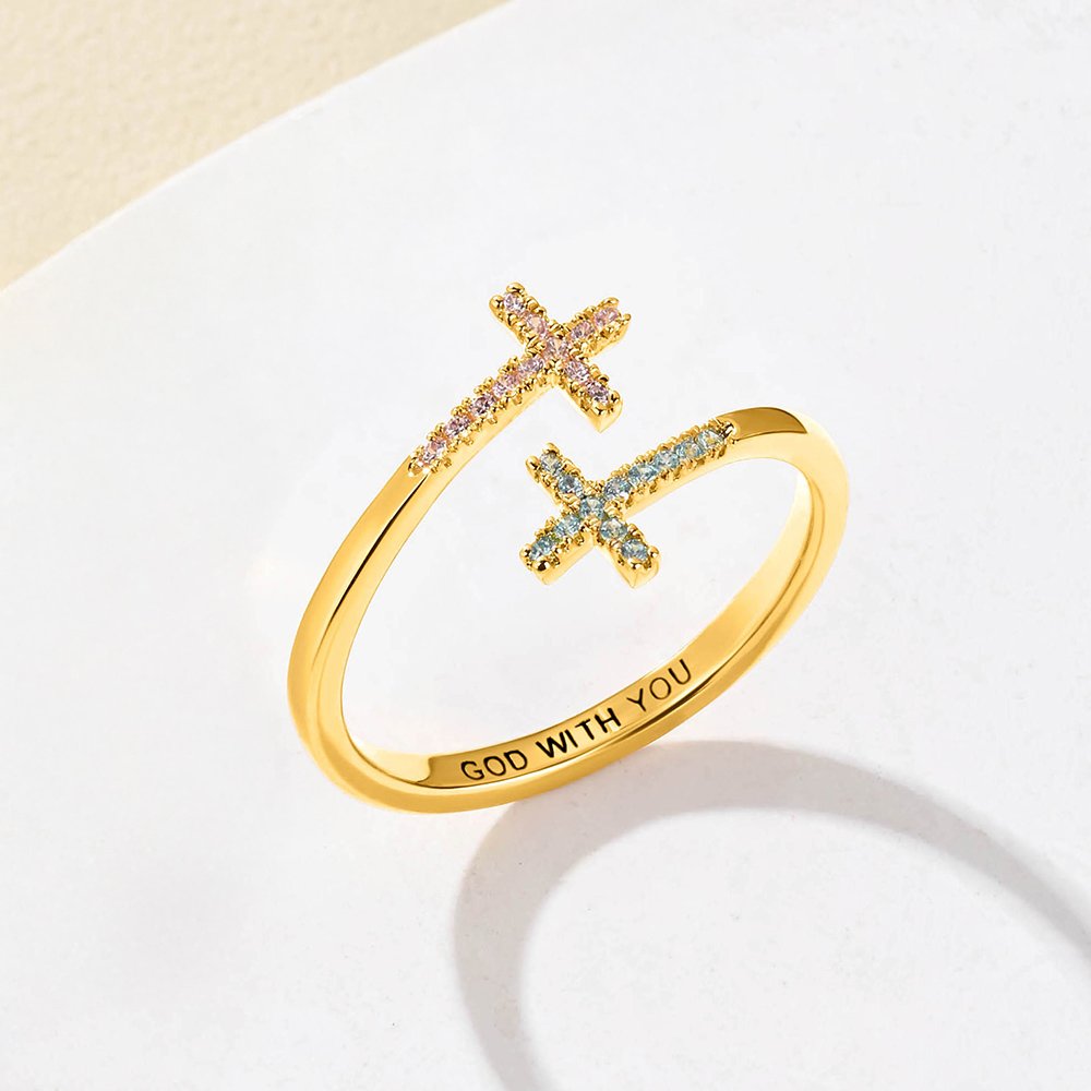 This ring presents a perfect combination of faith and emotion with its exquisite design. The double cross element symbolizes faith and protection, and the exclusive birthstone is cleverly embedded in it, which not only adds a unique visual highlight but also gives the wearer blessings and strength. The inner ring of the ring can be customized with words, and it supports engraving a sentence of the heart, making each ring unique and full of emotional warmth.