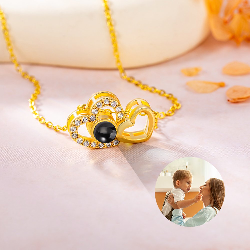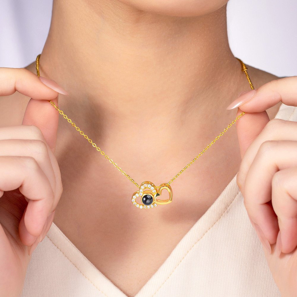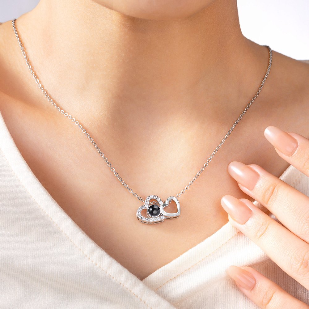 Our photo projection necklace records every unforgettable moment in life. The double heart-shaped design is exquisite, and the zircon embellishment is more luxurious. With a round photo projection, you can upload your favorite photos, including family, lovers, friends, or pets, and cherish your beautiful memories and important moments.