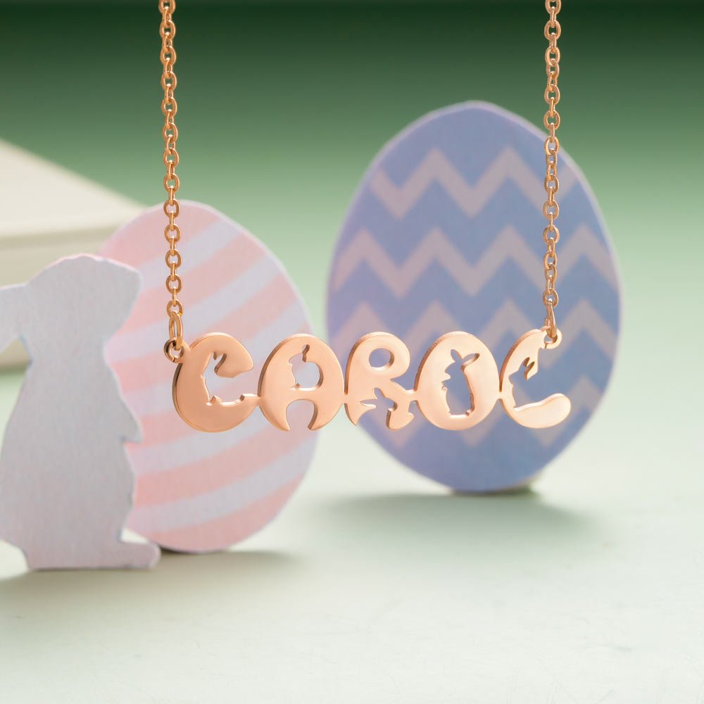• Design Inspiration: The rabbit has become a symbol of Easter because of its strong reproductive power, and people see it as the creator of new life. This name necklace combines the shape of an easter egg with bunny-shaped lettering. This is the perfect gift for anyone who loves bunnies or is interested in traditional Easter jewelry.