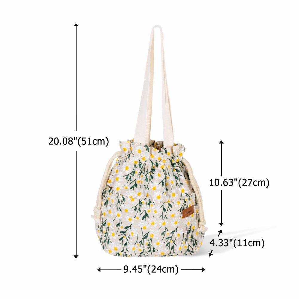 | Feature: | Large Capacity, Multiple Pockets, Lightweight and Durable, Waterproof Lining, Embroidered Daisy |