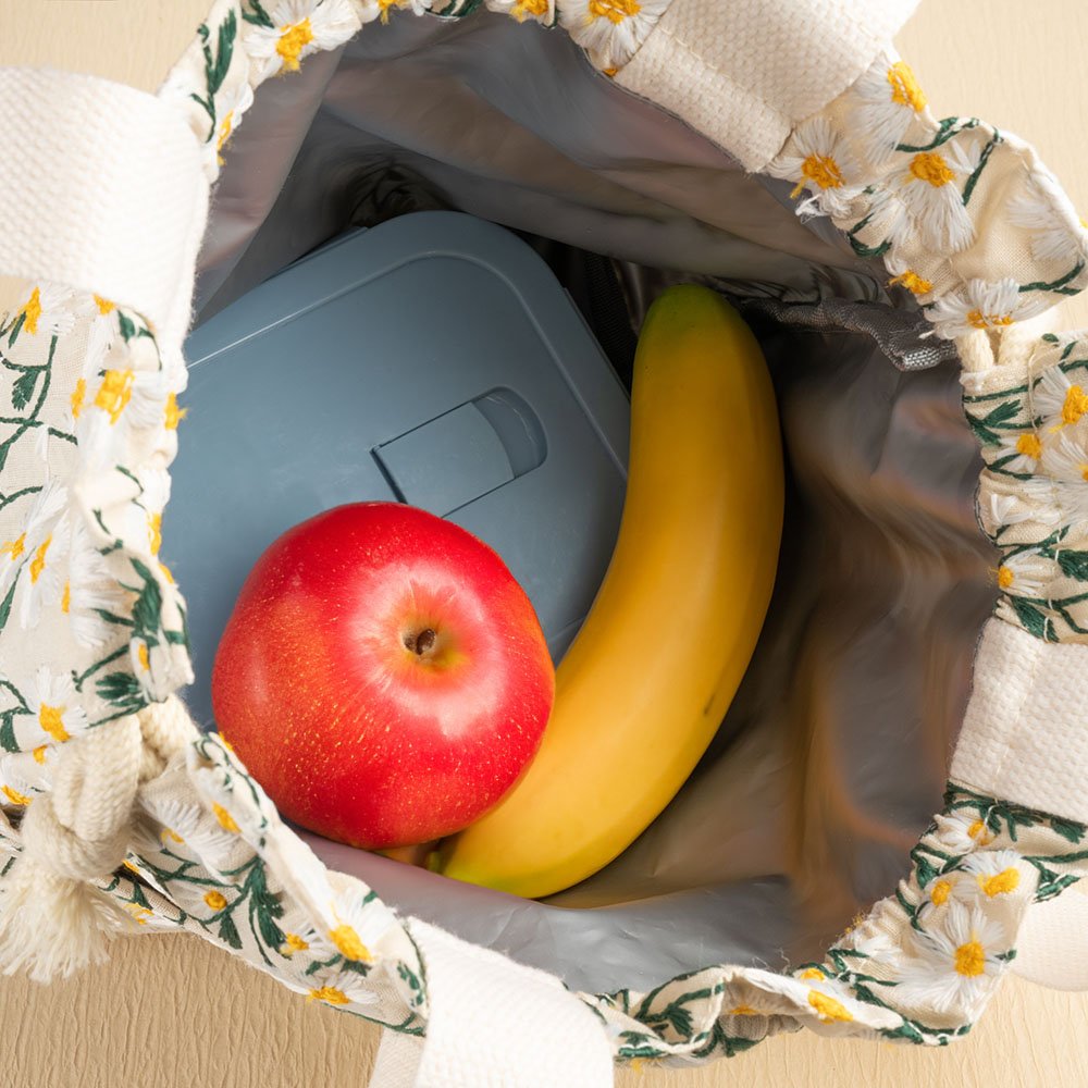 The drawstring closure design is easy to open and close, ensuring the safe storage of food and effectively preventing taste loss. In addition, the two pockets on the front can easily store water bottles, tableware, snacks, and other items, making your lunch more neat and orderly. The top hand-held design is not only convenient to carry but also can be used as a tote bag.