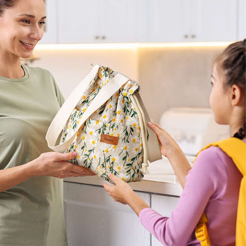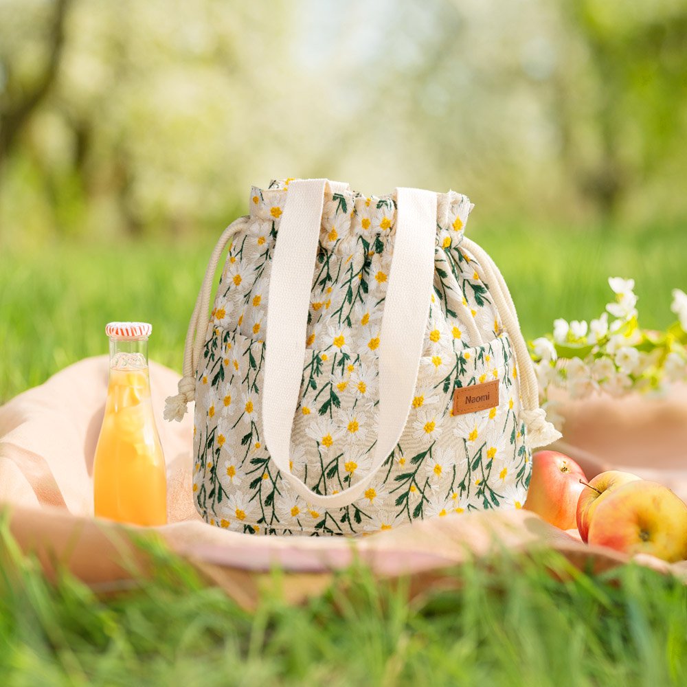 This lunch bag combines the fresh and natural daisy elements with your name to create a unique and exquisite lunch bag. The exquisite embroidery craftsmanship complements the lovely daisy pattern, showing your elegant temperament while adding a warm and personalized touch.
