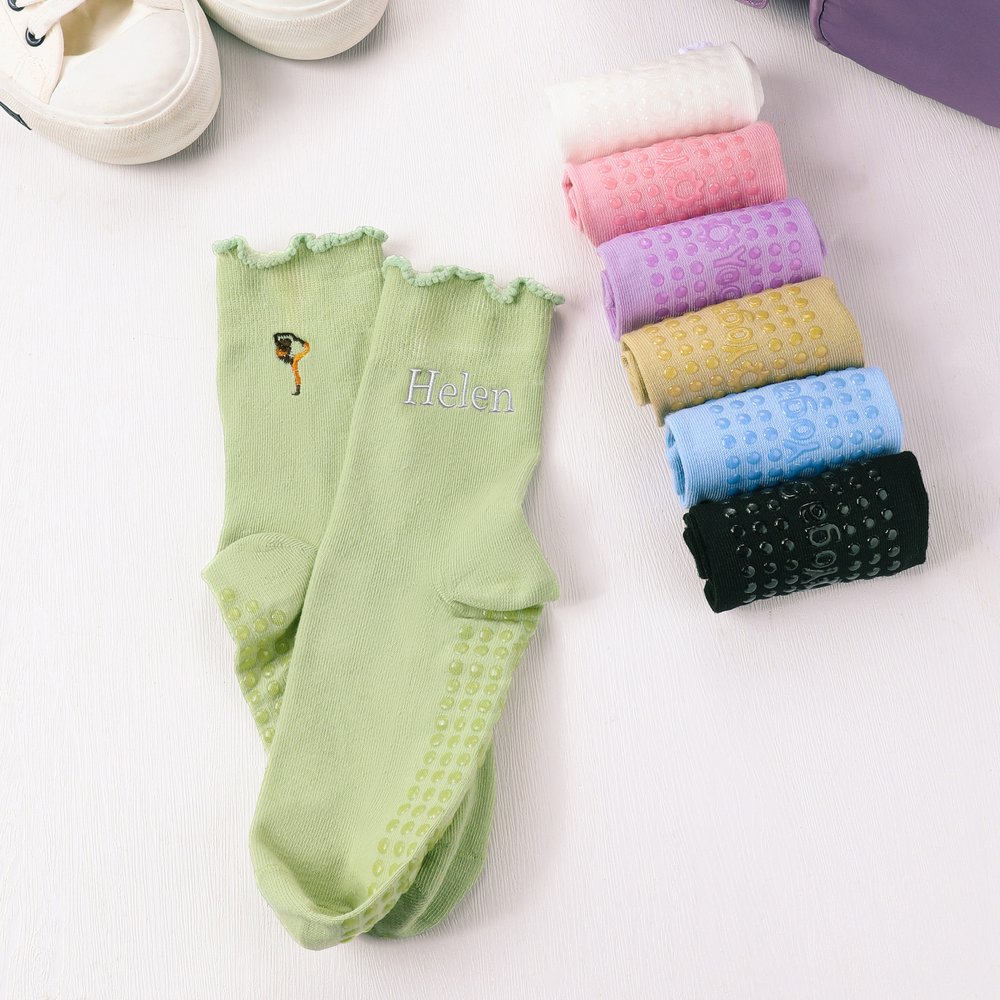 Crafted from materials optimized for yoga and Pilates, the sock soles feature a silicone anti-slip design to enhance friction between feet and yoga mats, preventing slippage during exercise and improving movement stability. The sock body is made from soft, skin-friendly fabric that conforms to foot contours while offering excellent breathability to reduce foot stuffiness. The embroidery is durable and resistant to fading, even after repeated washing, balancing exercise safety with longevity.