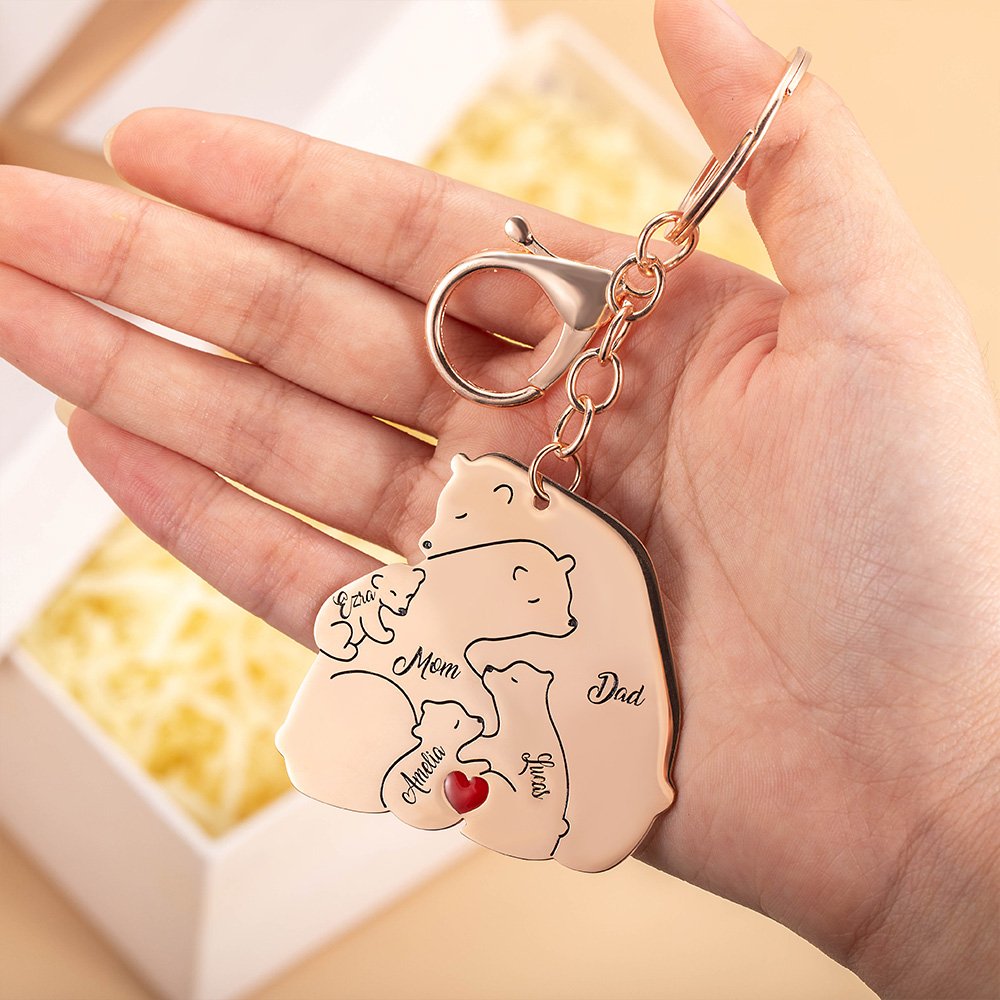 What makes this keychain truly special is the ability to personalize it with the names of your loved ones. Each bear can be engraved with a name, creating a unique and meaningful keepsake that celebrates your family's individuality. Just imagine the joy on the recipient's face as they see their or children's names beautifully displayed on this thoughtful gift.