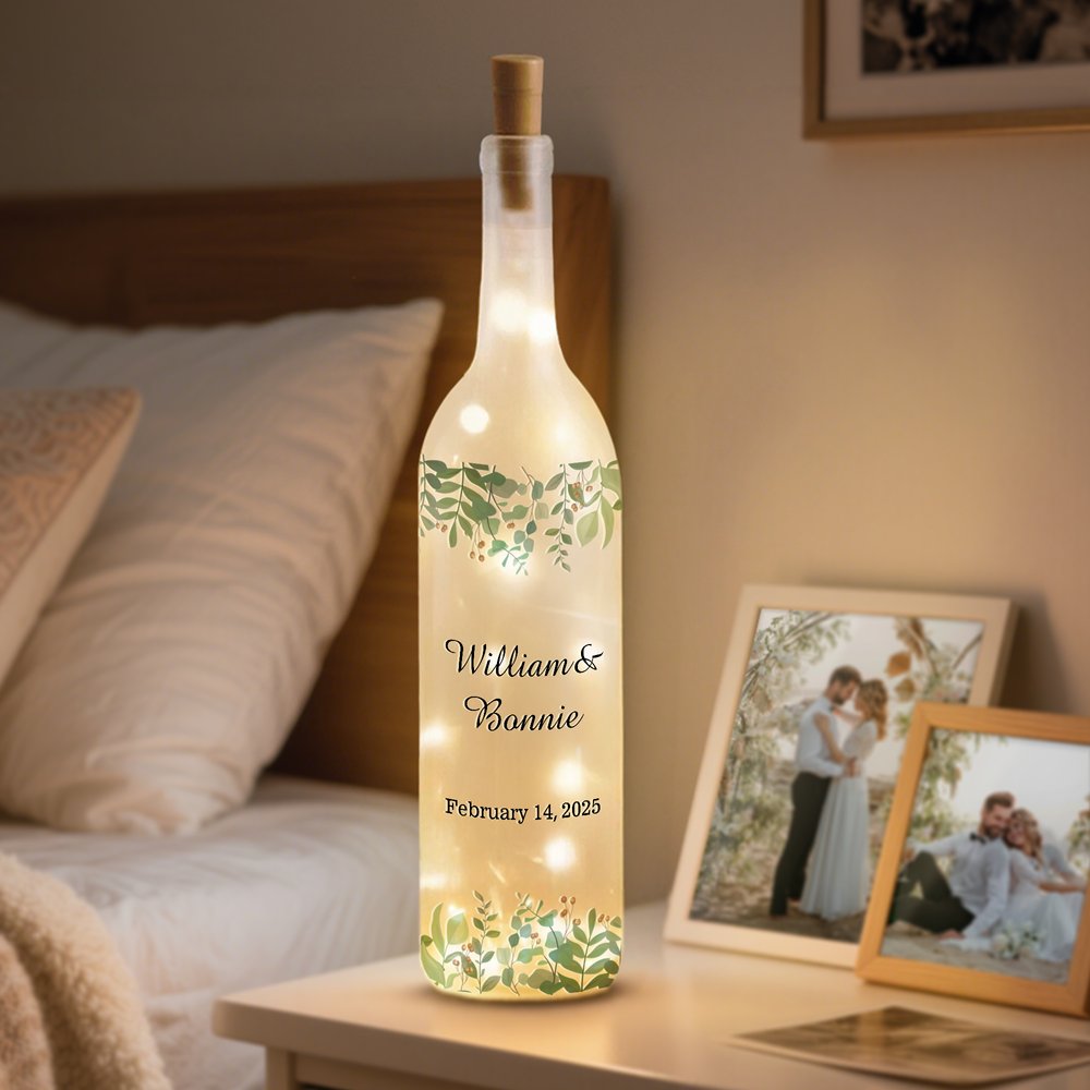 Light up your love story with this night light. The bottle of the night light is designed with an eucalyptus plant that symbolizes the continuation of your love, the beginning of marriage, and the next journey of life, creating a quiet and romantic atmosphere. You can customize your text and date to make it a unique souvenir to celebrate love and precious moments.