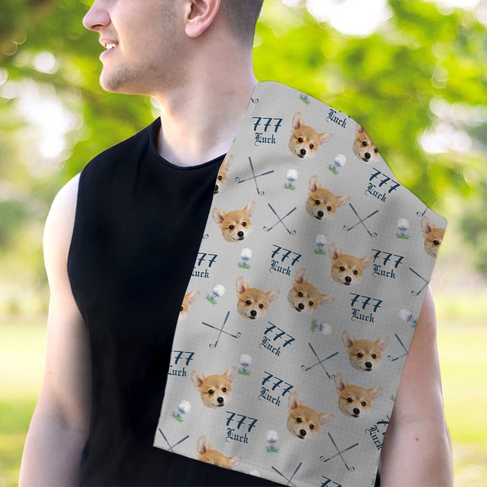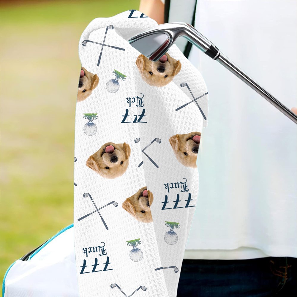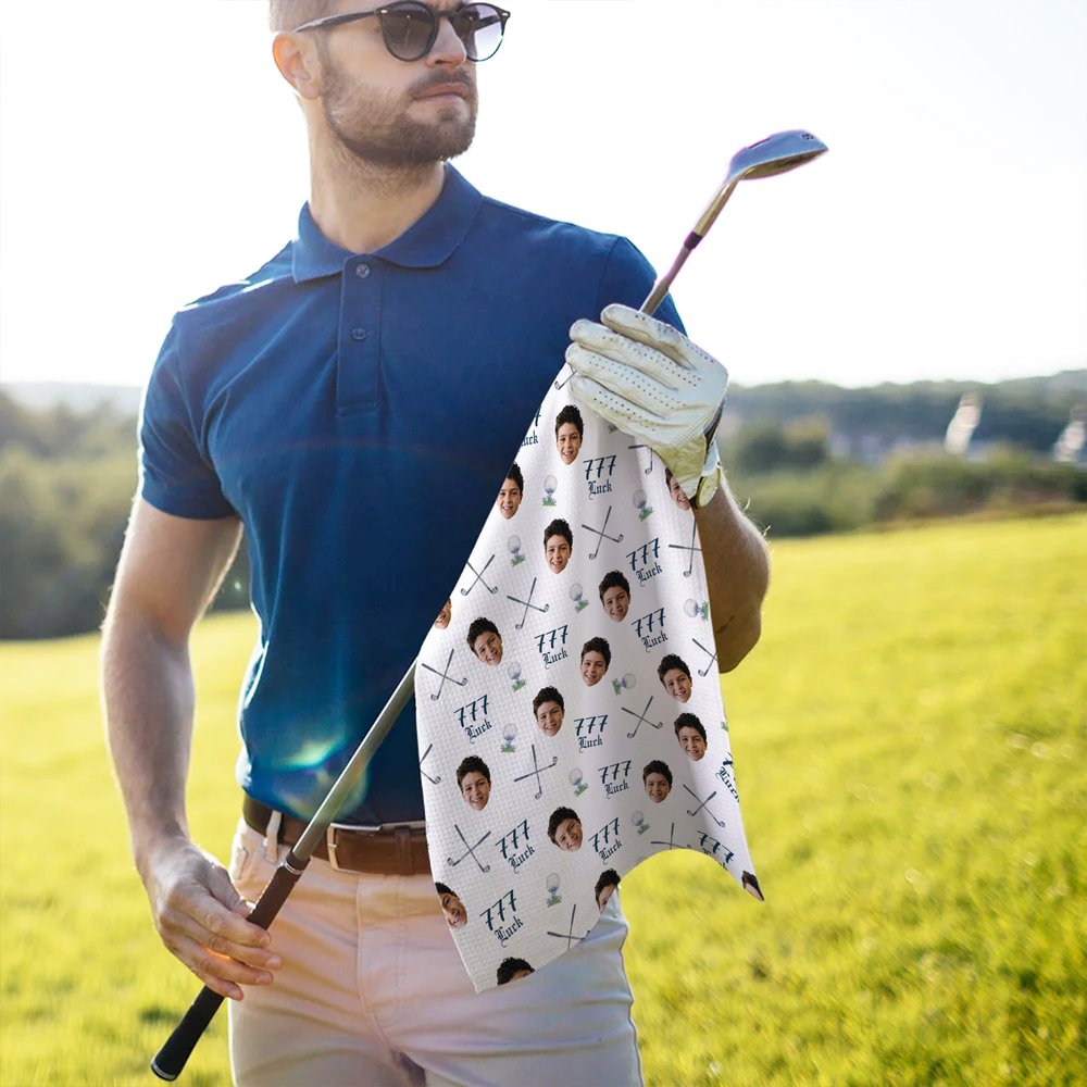 Personalized Face Photo Quick Dry Microfiber Waffle Golf Towel with Number and Carabiner Clip Golf Accessory Birthday Gift for Golf Player