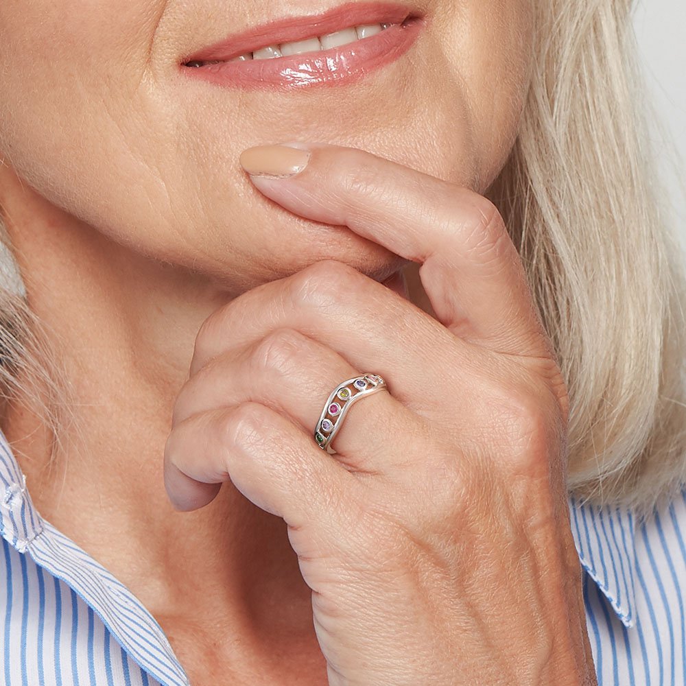 This ring is designed with 1 to 8 customizable birthstones, each representing a specific birth month. These gemstones symbolize the meaningful connections within a family, capturing the essence of life’s milestones. Whether honoring the bond between a mother and her children or commemorating the memories shared among three generations, this jewelry piece serves as an "emotional code" that tells the family story.