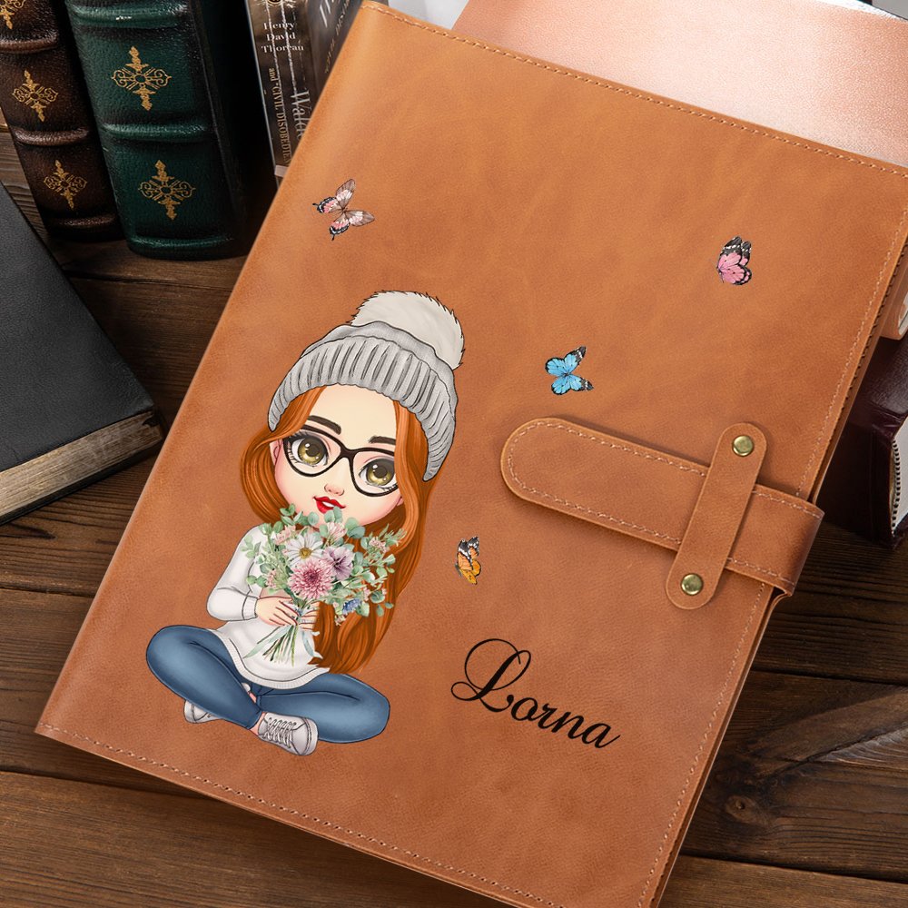 The addition of colorful butterflies fluttering around the character enhances the overall aesthetic, creating a whimsical and cheerful atmosphere. The option to personalize the cover with a name makes it an even more special and individualized gift.