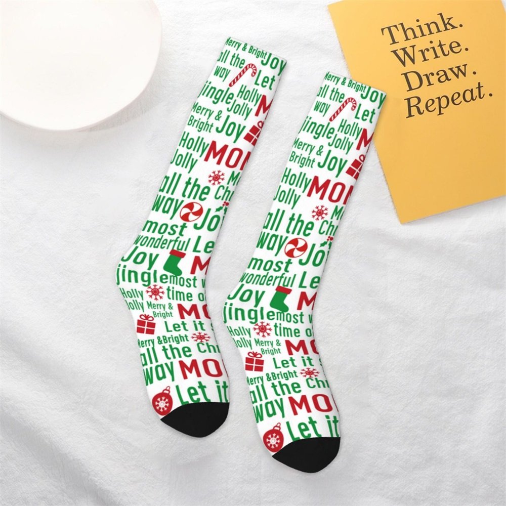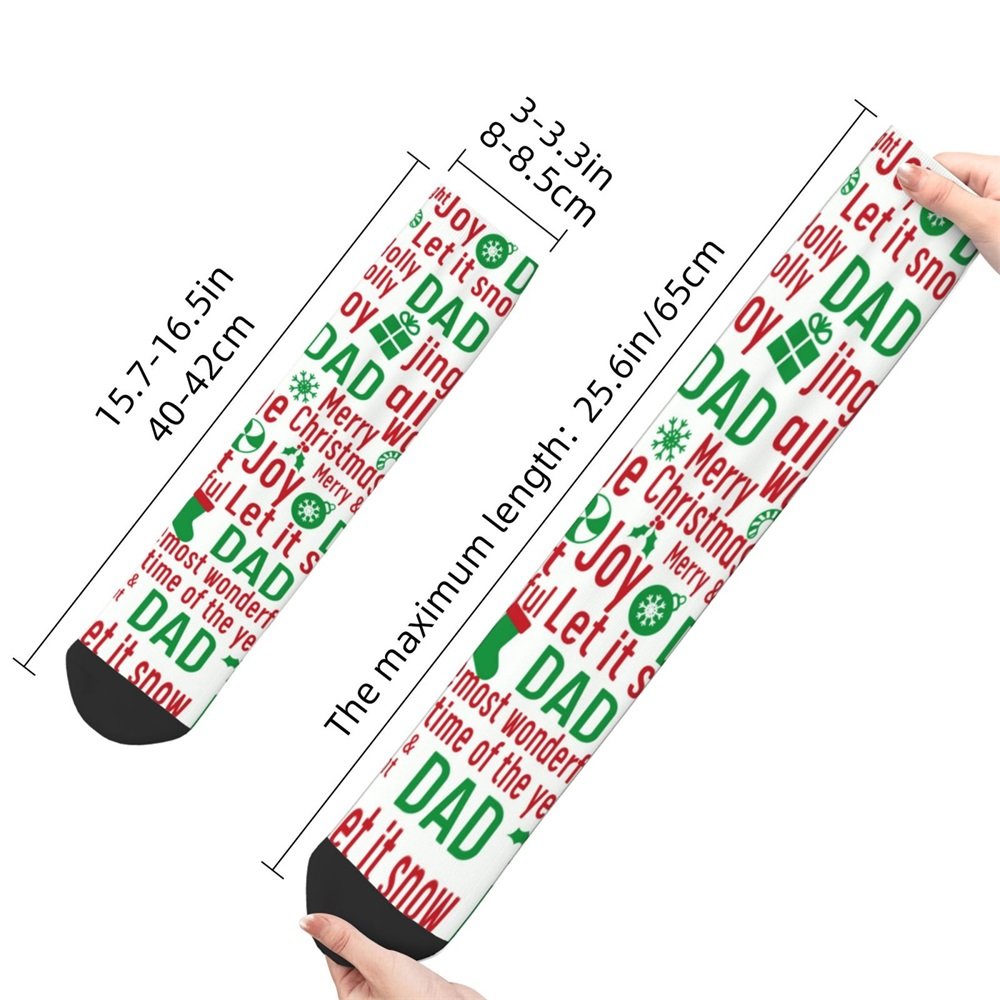 Our family Christmas socks can be customized with the title, such as dad, mom, grandma, etc. to create a one-of-a-kind sock for the family members. Suitable for daily decorative matching wear, also suitable for sports when wearing, not only warm but also a good decoration.