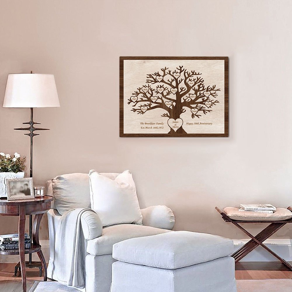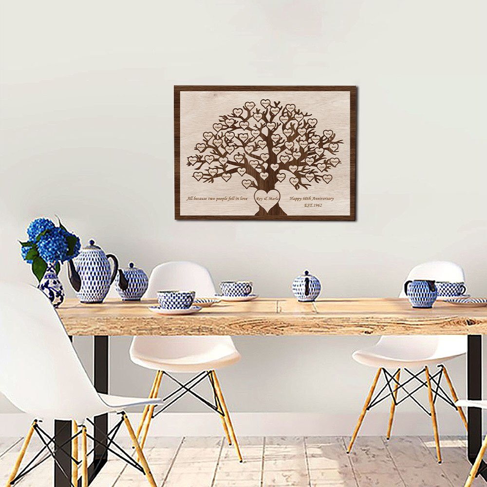 This beautiful family tree painting is 16" wide and 12" tall, and also has a large heart inside the trunk for you to custom text. Each little heart scattered on the branches can be designed with 5-70 names to represent a special person in your life. What's more, there is enough room on both sides of the tree for you to custom any phrases or quotes you wish. It's a nice way to show your love and connection with family, just like a tree and its growing branches.