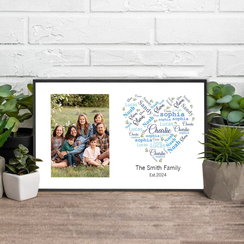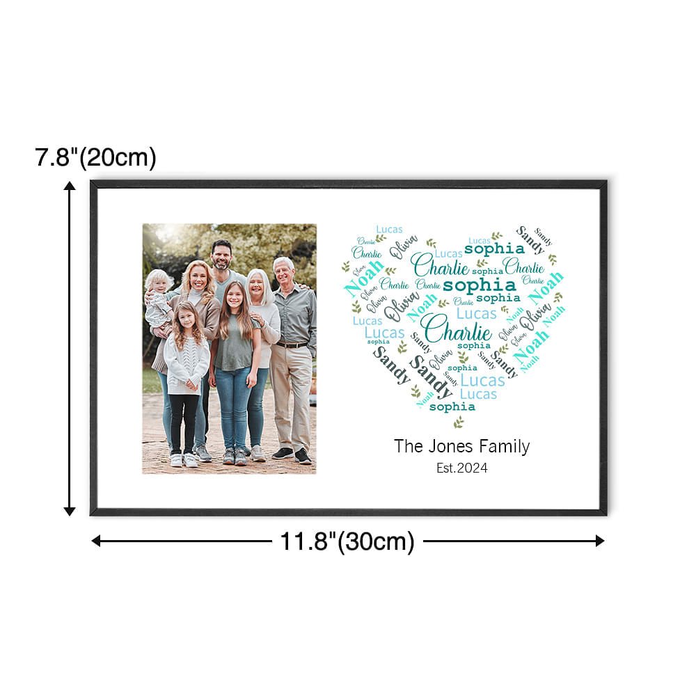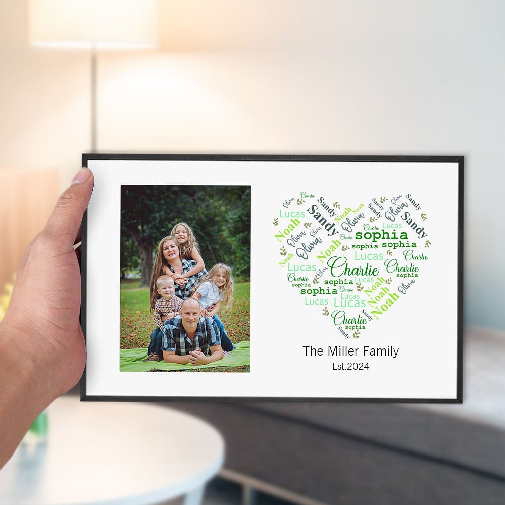 This photo frame can be personalized with 1-20 family members' names, a family photo, a family name, and a significant year. Create a unique and heartfelt memento that captures the essence of your family's bond and history.