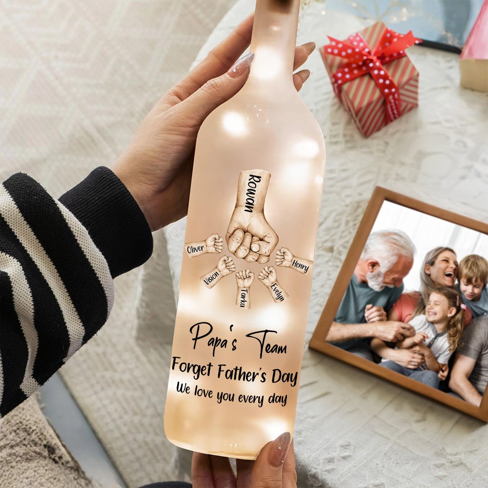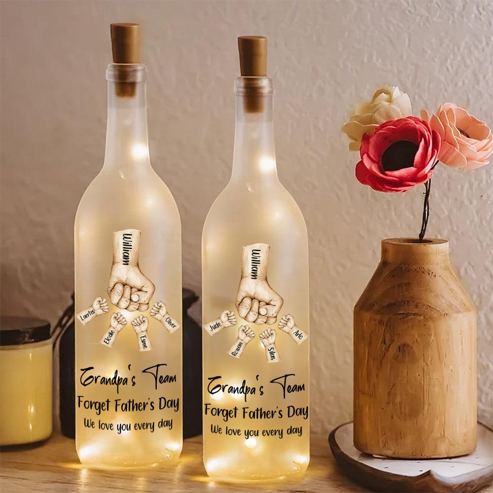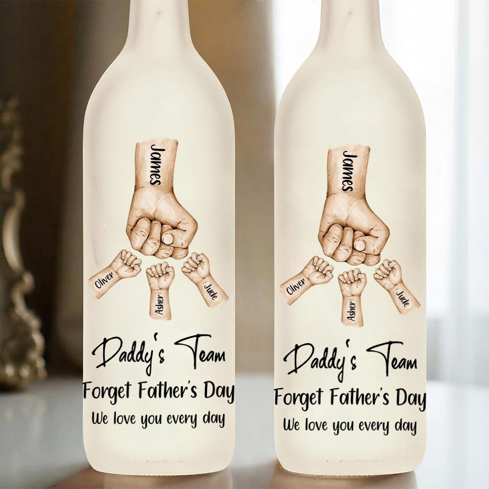 This LED bottle lamp features a heartwarming father-child fist bump design, deeply expressing the bond between father and child. You can customize the text and include the names of 1 to 12 children, allowing each bottle lamp to showcase unique family emotions and become a truly one-of-a-kind home decoration.