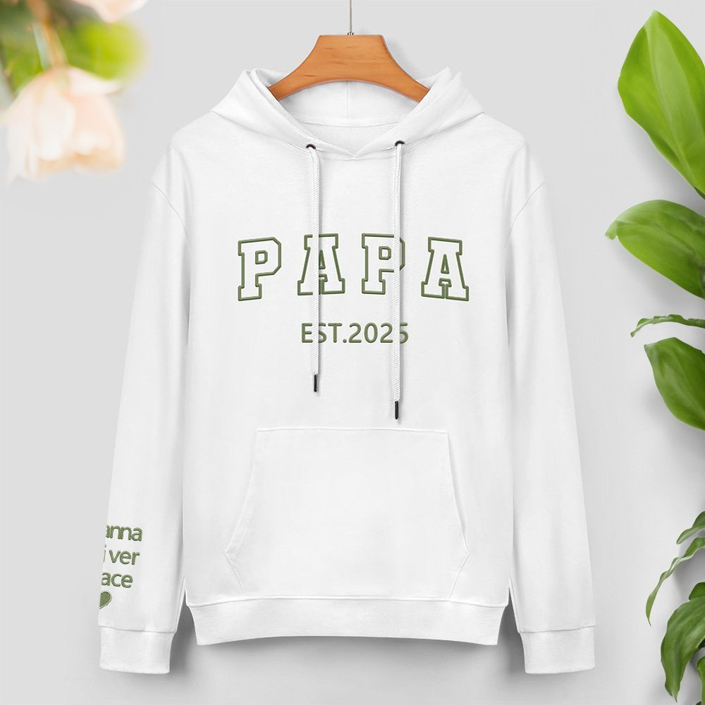 The standout feature of this sweatshirt is the faux embroidered design that showcases your dad or grandfather's name, initials, or a meaningful year like the year they became a father or grandfather. But that's not all - this special sweatshirt also features the names of their beloved children or grandchildren, creating a truly one-of-a-kind and heartfelt piece.
