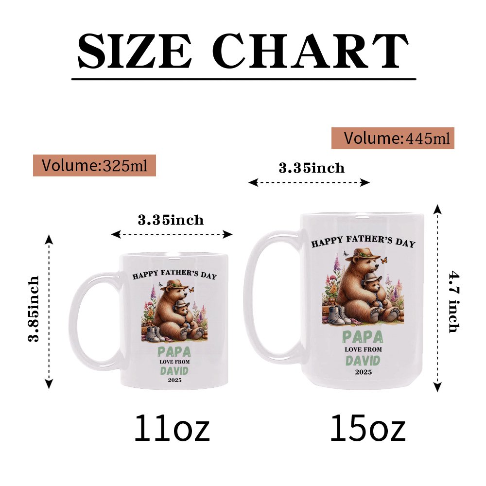 This mug features a graphic design that blends vivid graphics with warm words, which conveys warmth at every glance. There are two titles to choose from, and you can customize the title you want. In addition, the cute hugging cartoon bear pattern can also be engraved with your father's name, and you can choose from various colors to make this unique gift.