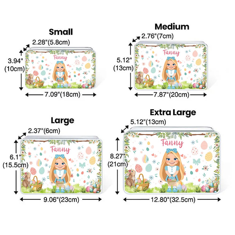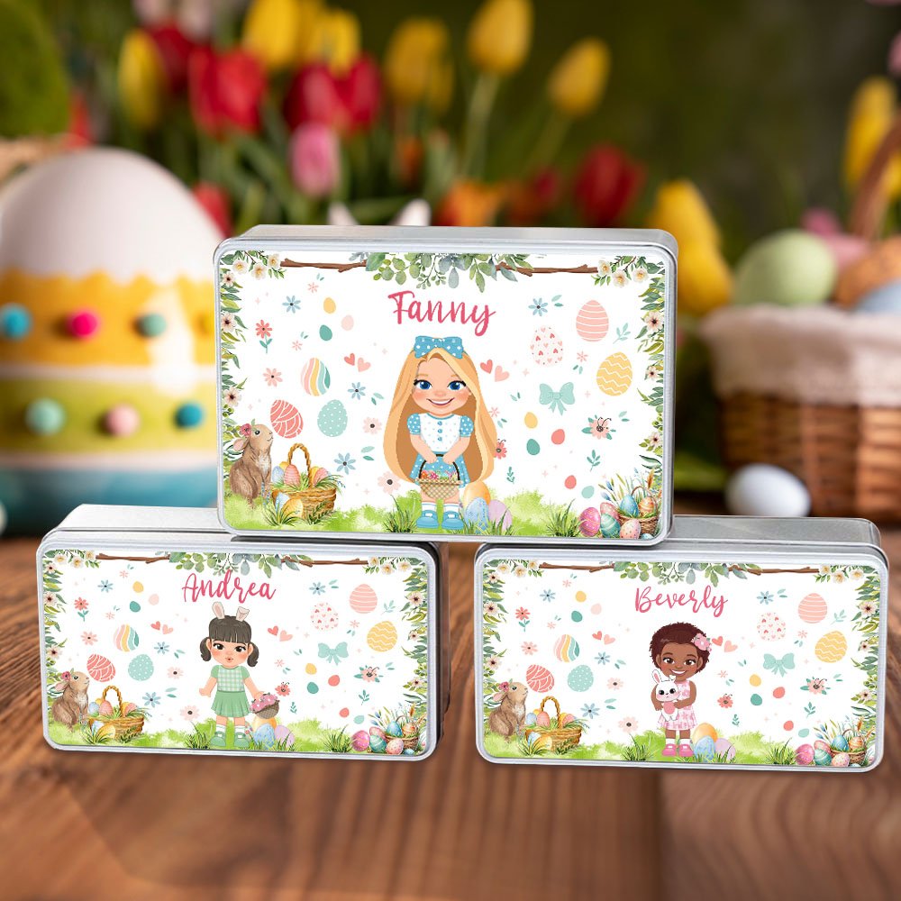The design of this box is full of festive joy and childlike fun. There is a cute Easter girl cartoon image printed on the box, surrounded by Easter bunnies, eggs, and flowers, creating a strong festive atmosphere. You can also customize your name on the cookie box to make it more exclusive.