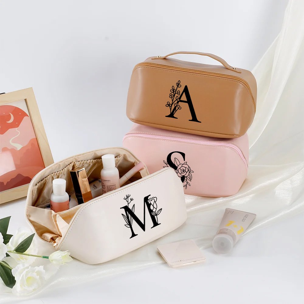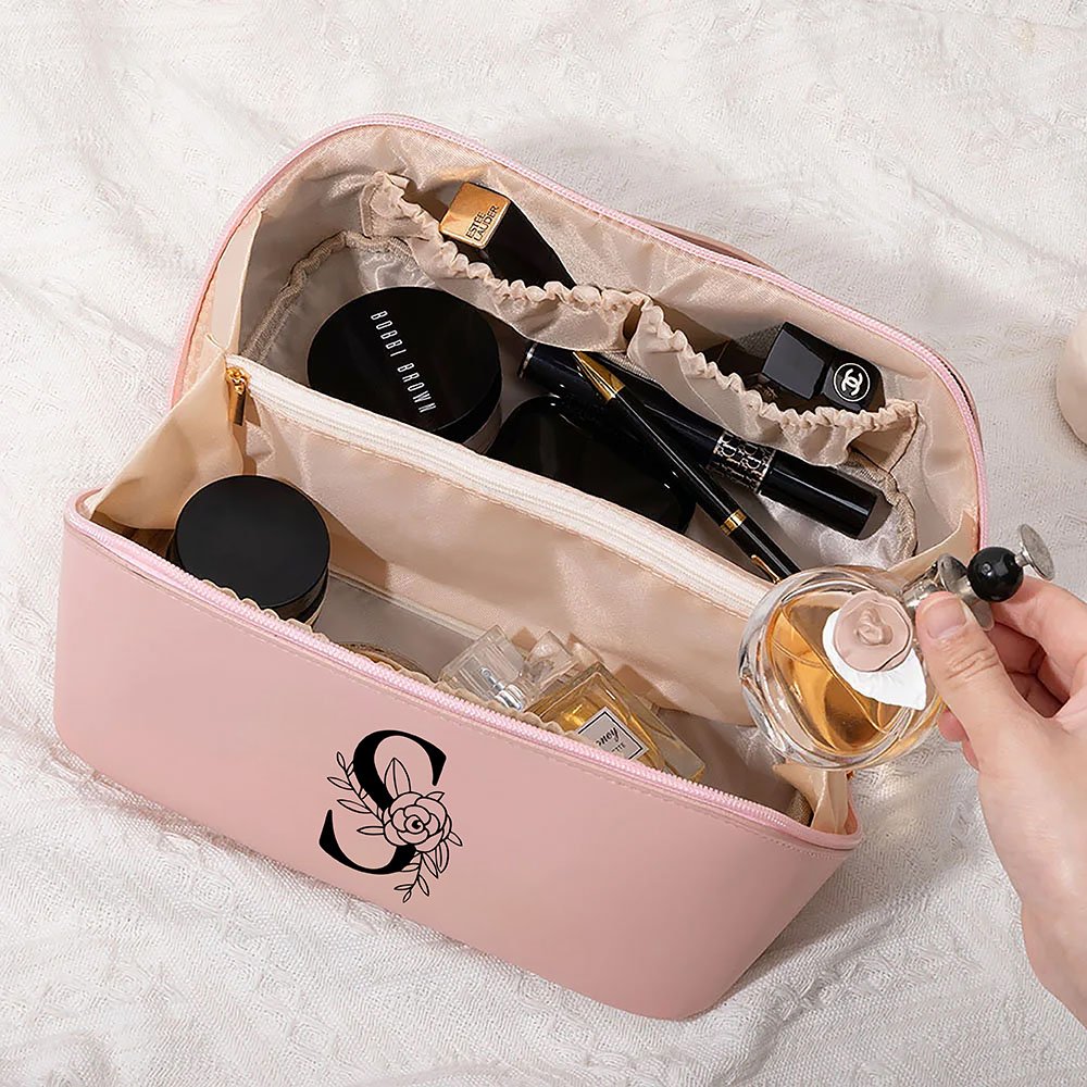 This leather cosmetic bag has a charming design, with simple initials paired with floral patterns. The simple layout not only highlights the unique beauty but also ensures practicality. Each bag can be customized to add a personal touch, making it a one-of-a-kind gift.