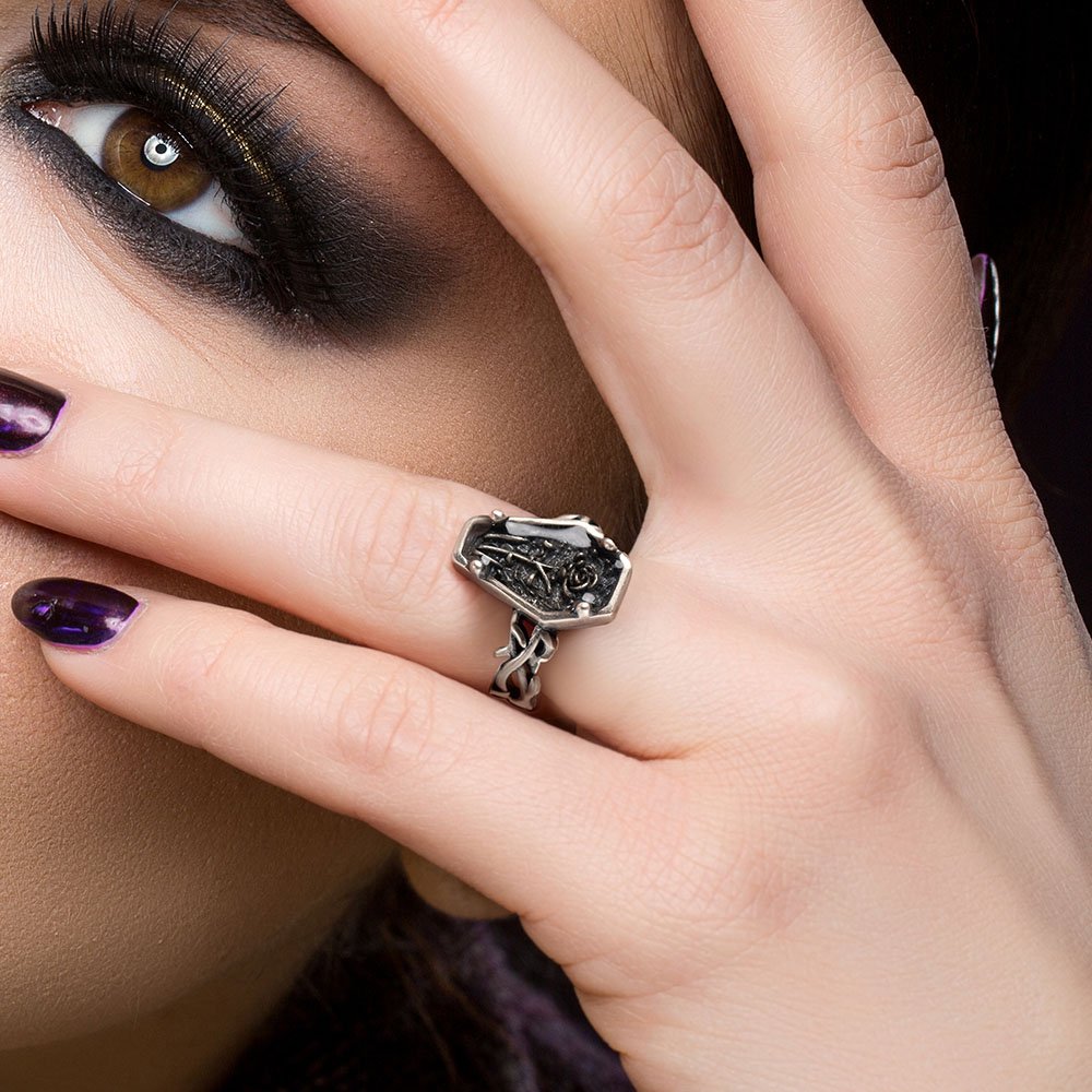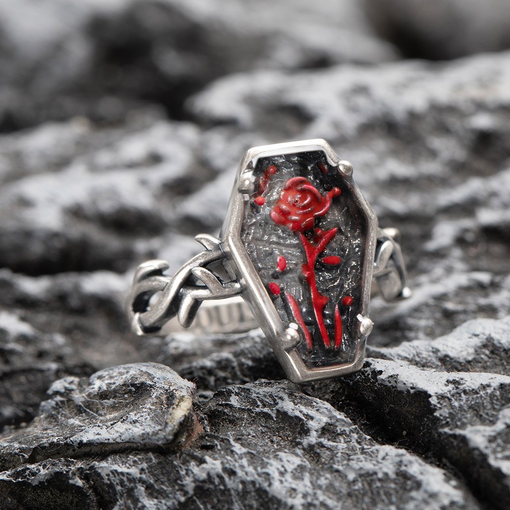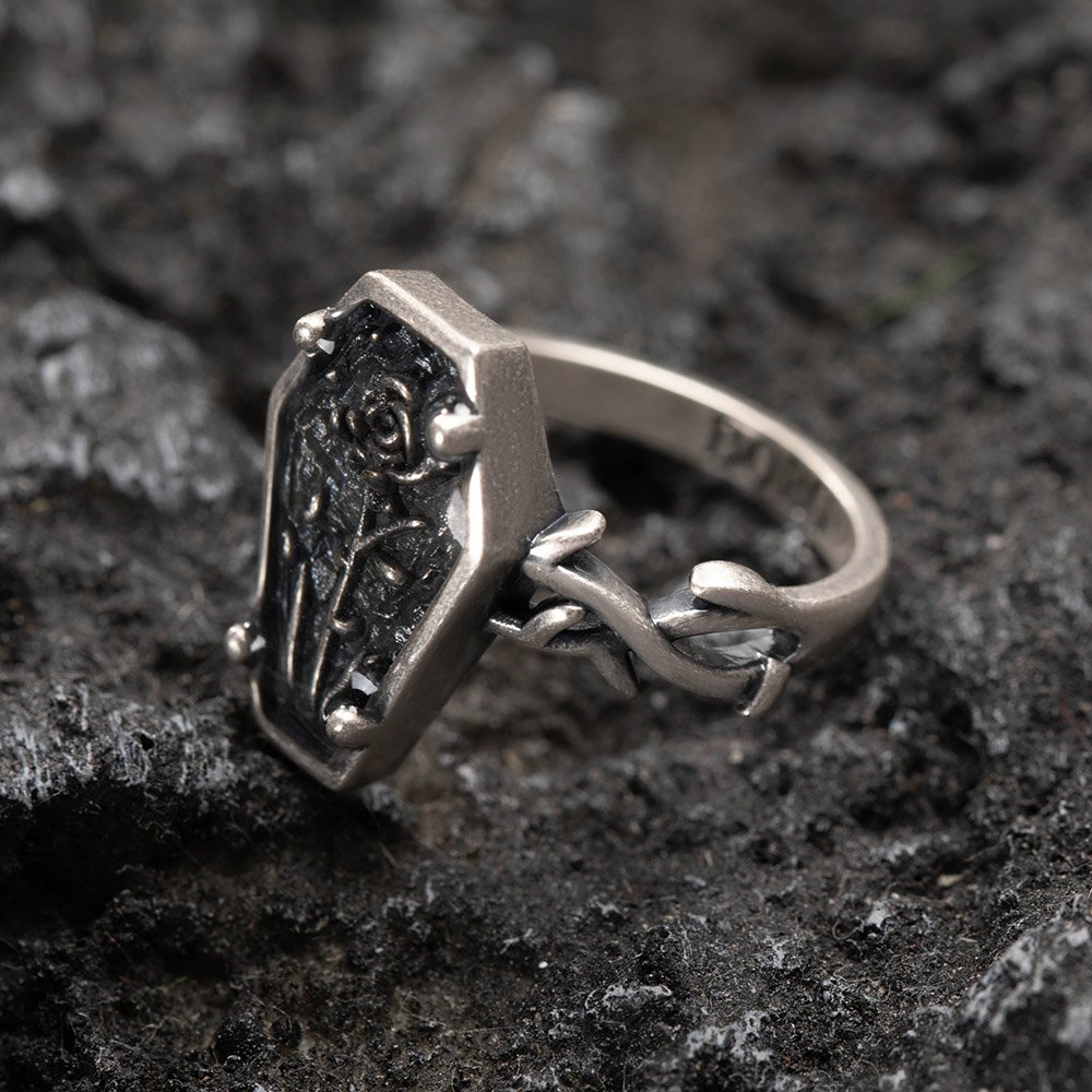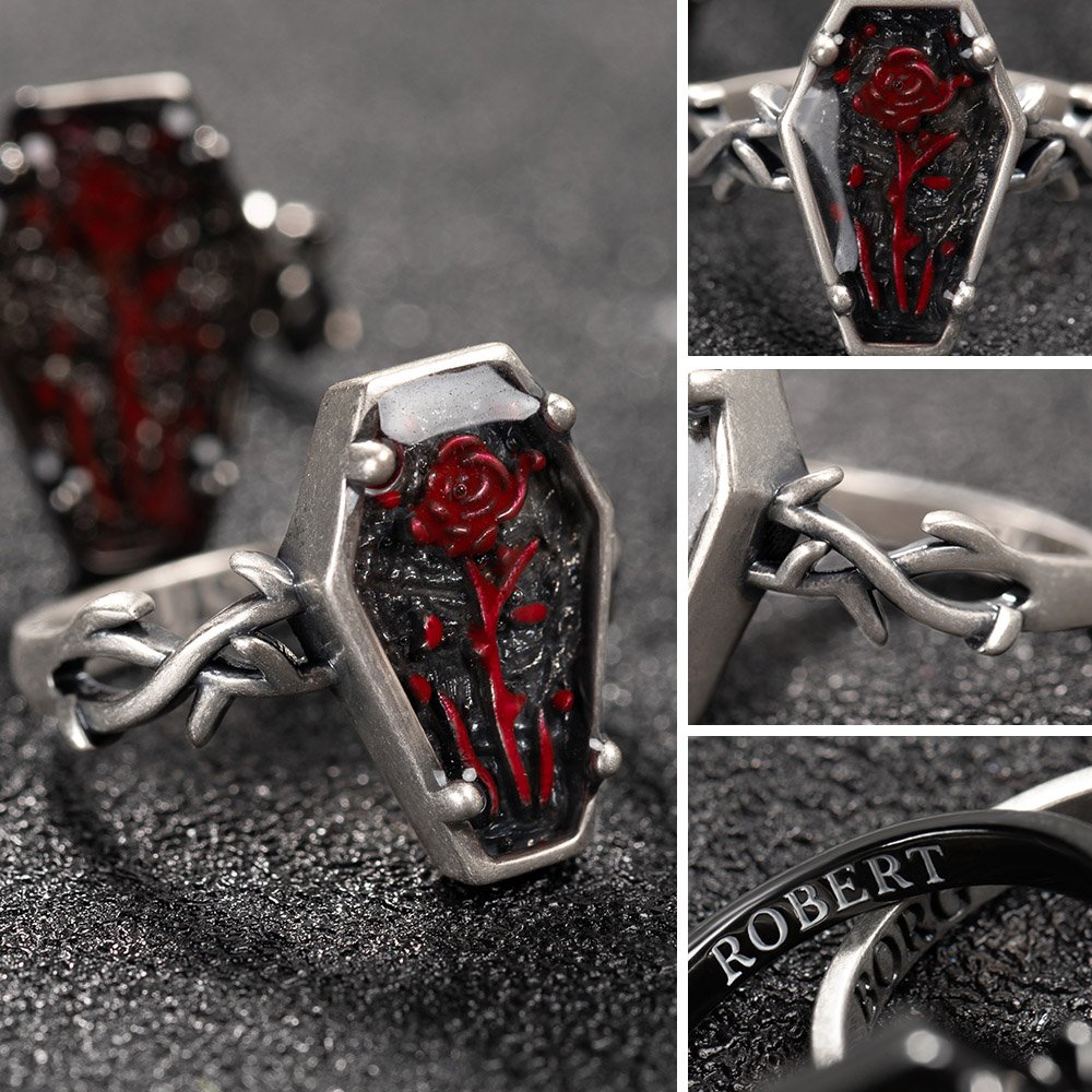 This ring adopts retro Gothic style, the perfect combination of coffin and rose, presenting a mysterious and romantic atmosphere. You can also add your name on the inner ring of the ring to make the ring more unique and create exclusive jewelry.