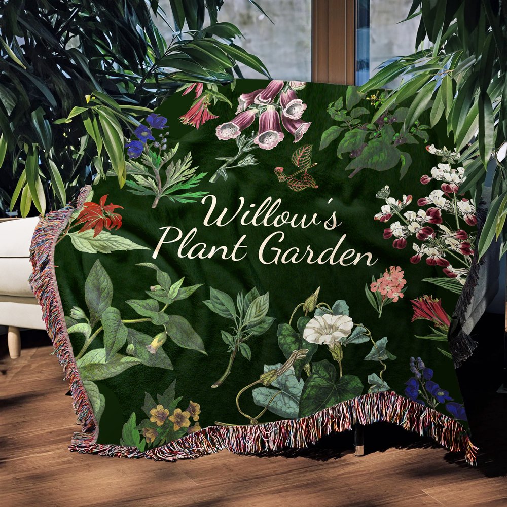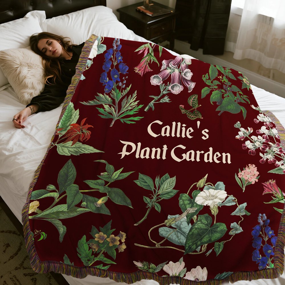 This blanket incorporates a dark, romantic Gothic style, featuring a beautiful, rich herbal pattern for a unique and eye-catching look. It also offers three fonts and a multi-color background, and can be customized with your own name and "'s Plant Garden" text, making it both decorative and personal, perfect for lovers of both herbal and Gothic styles.